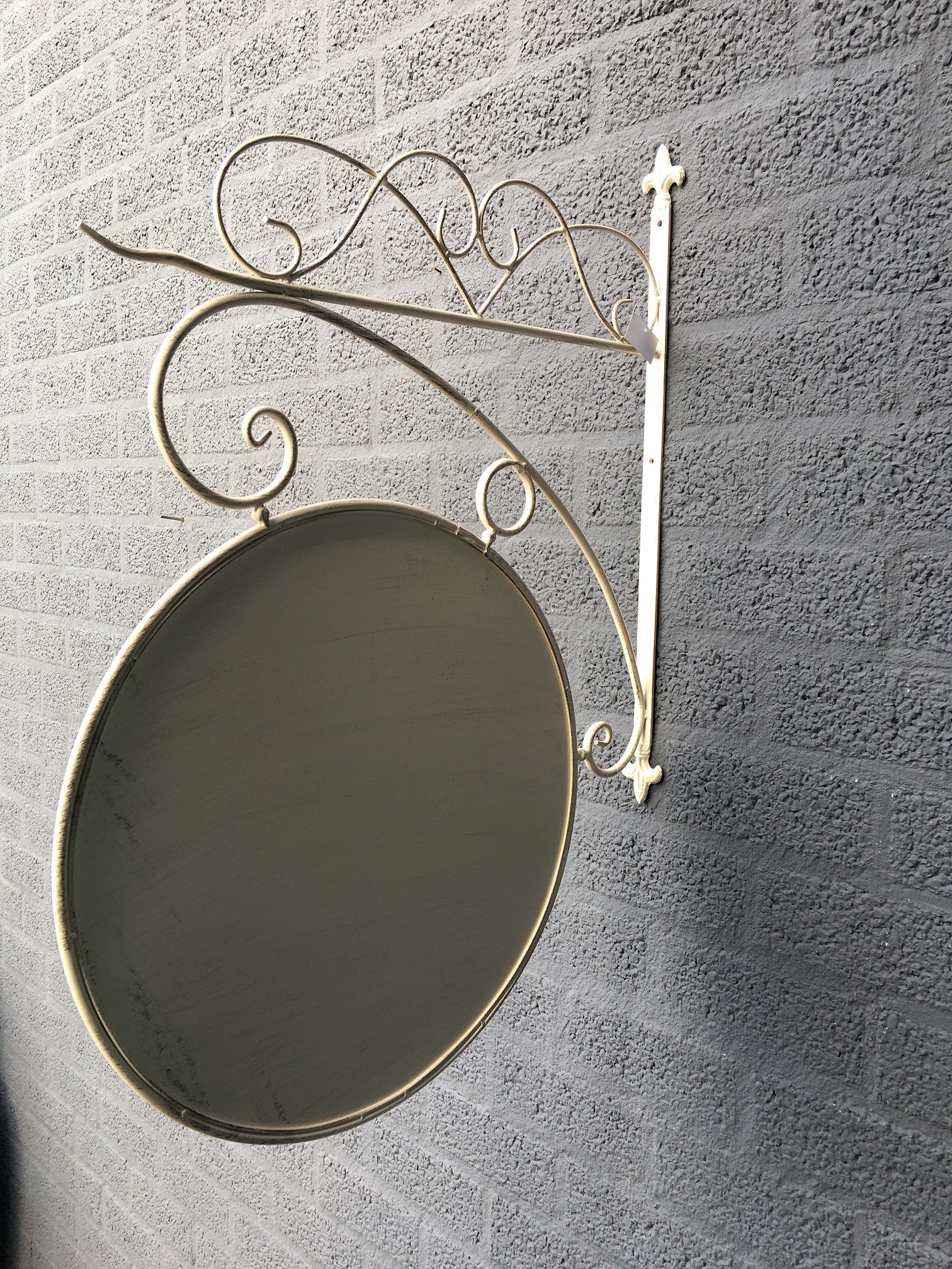 Ladenschild, Werbeschild rund, Schmiedeeisen, alt-weiß