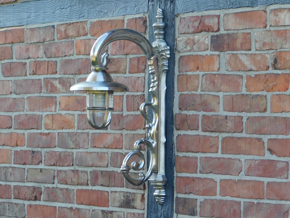 LAST: Antike Schiffslampe - vernickeltes Messing - Wandlampe - verschnörkelter Arm