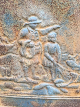 Schwere Ausführung aus massivem Gusseisen mit schöner Szene als Bild auf der Vorderseite. Wenn diese Platte als Feuerschutz hinter der Kaminwand verwendet wird, wird die Szene durch die Hitze des Feuers schön sichtbar sein.