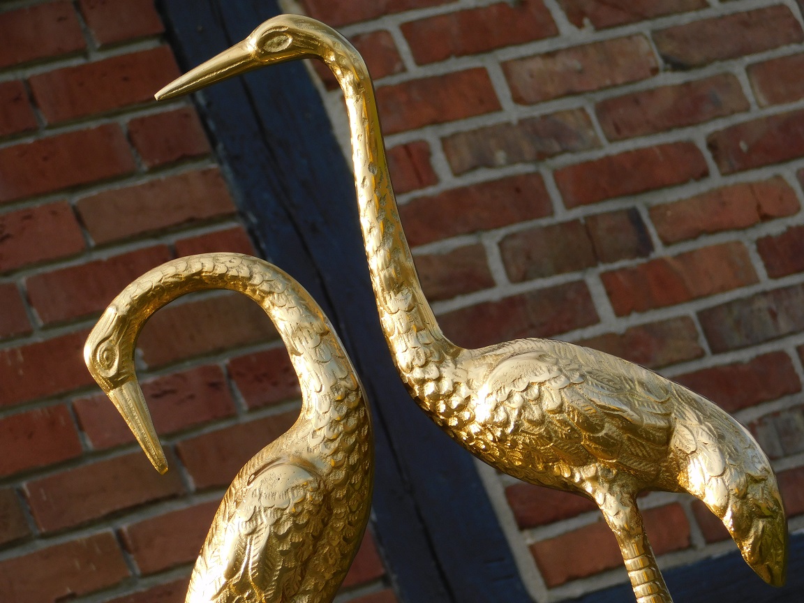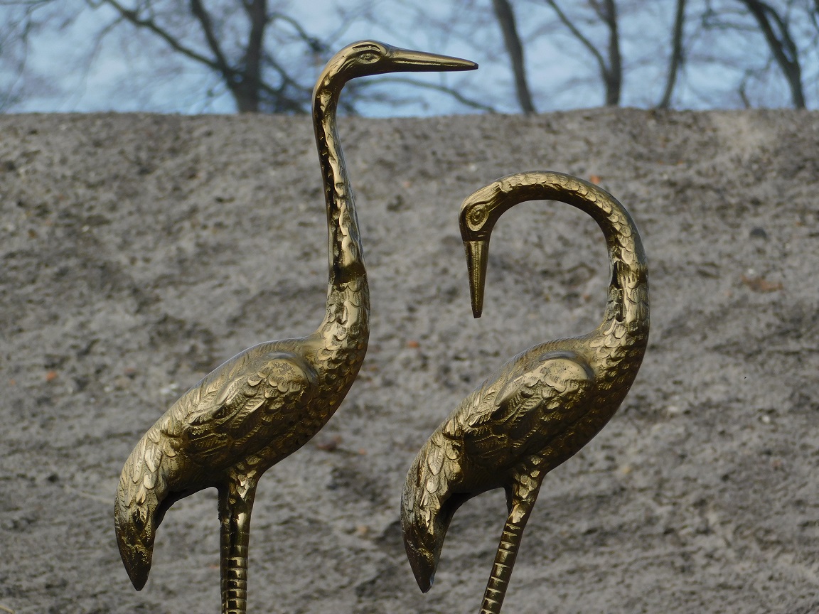 Eine perfekte Kombination aus Natur und Luxus: Dieses Kranichset verbindet die natürliche Schönheit der Vögel mit dem luxuriösen Aussehen von goldenem Aluminium und ist damit eine raffinierte und einzigartige Ergänzung für jedes Interieur.