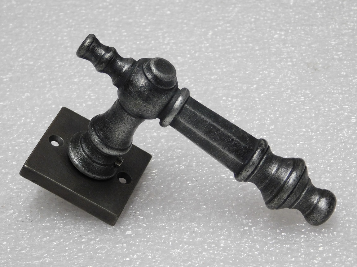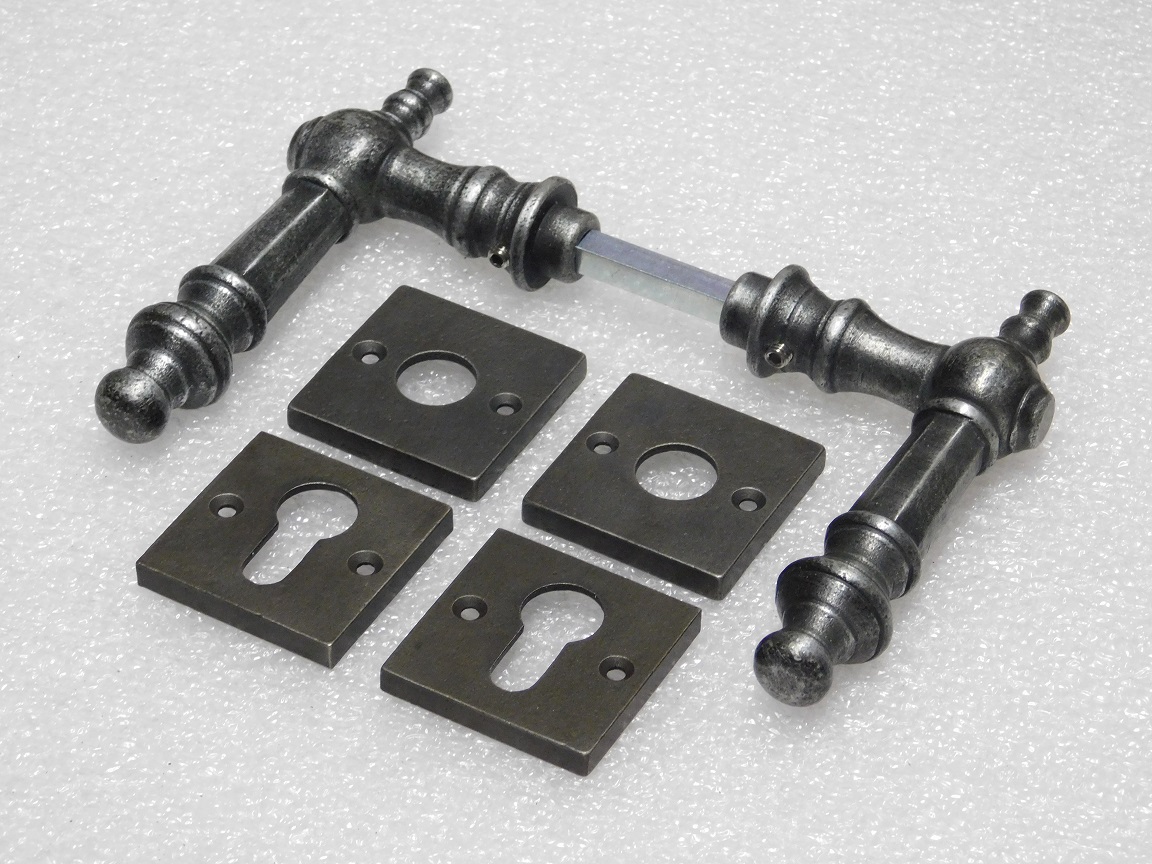 Set Türgriffe Victoria + Türgriff- und Schlossrosetten, quadratisch – Gusseisen, verzinkt