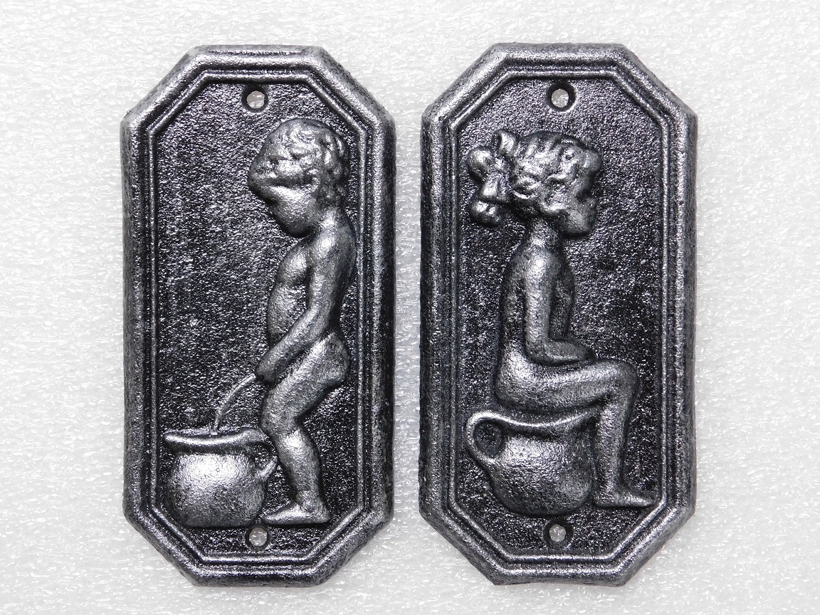 Bestellen Sie diese robusten Toilettenschilder aus Gusseisen noch heute und verleihen Sie Ihrer Toilette ein professionelles und charmantes Aussehen.