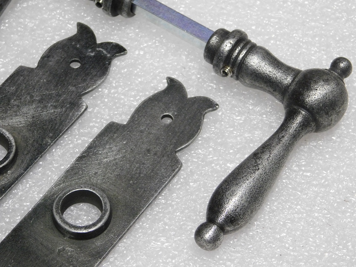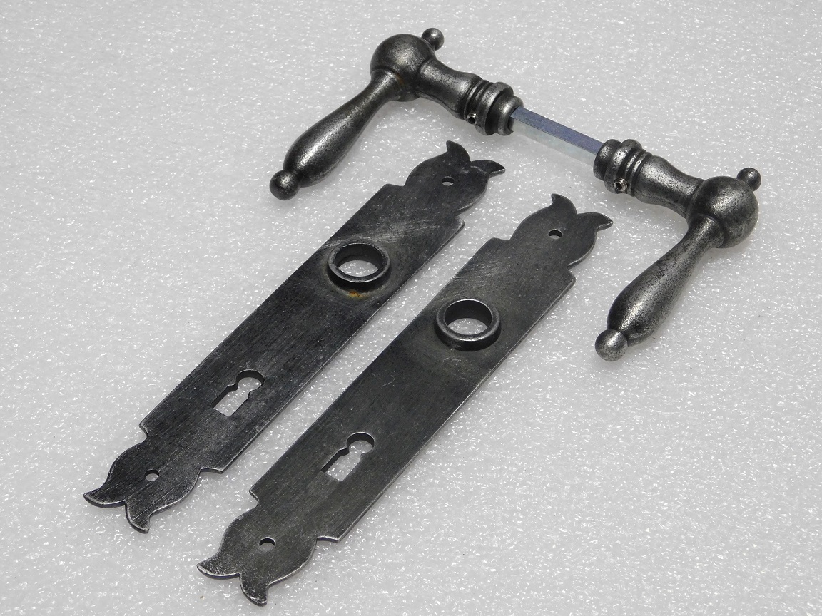 Türbeschlagset – Türgriffe Cambridge + Türplatten Baron BB 72 – Verzinktes Gusseisen