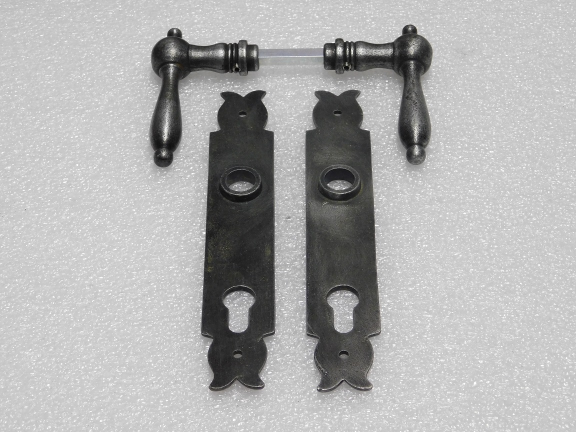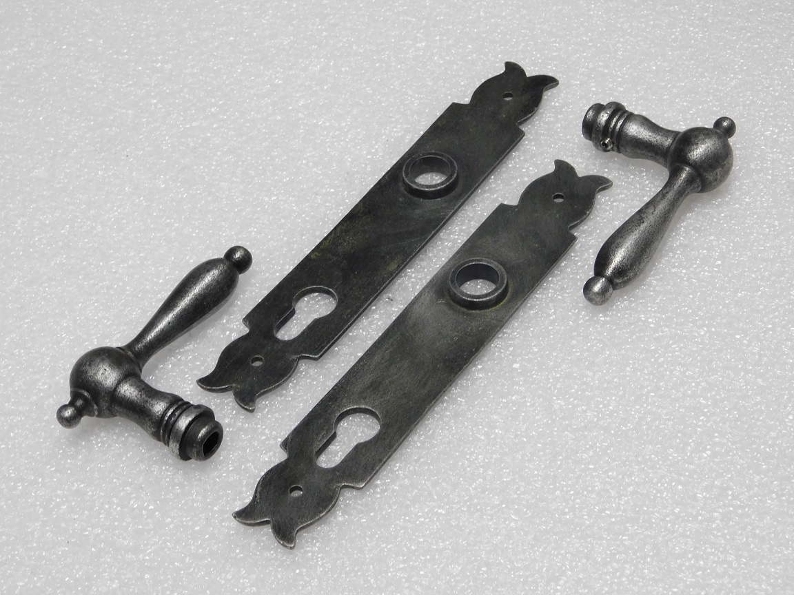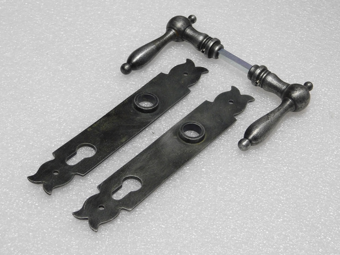 Türbeschlagset – Türgriffe Cambridge + Türschilder Noble PC 92 – Gusseisen, verzinkt