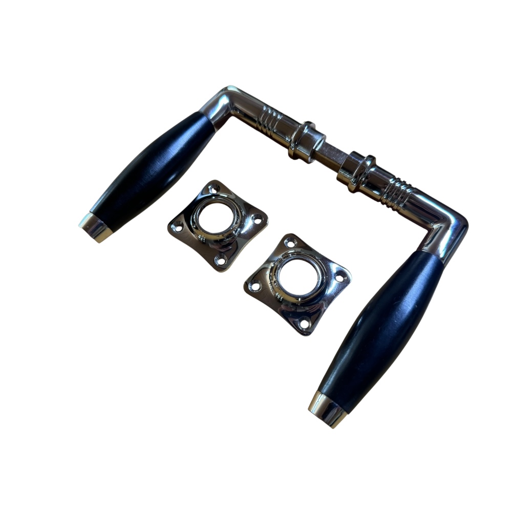 Dieses elegante Türbeschlagset in glänzendem Nickel verleiht Innentüren eine raffinierte und klassische Ausstrahlung. Die Kombination aus glänzendem Metall und den dunklen Griffen aus Ebenholz sorgt für einen stilvollen Kontrast, der sowohl zu klassischen als auch zu ländlichen Einrichtungsstilen perfekt passt.