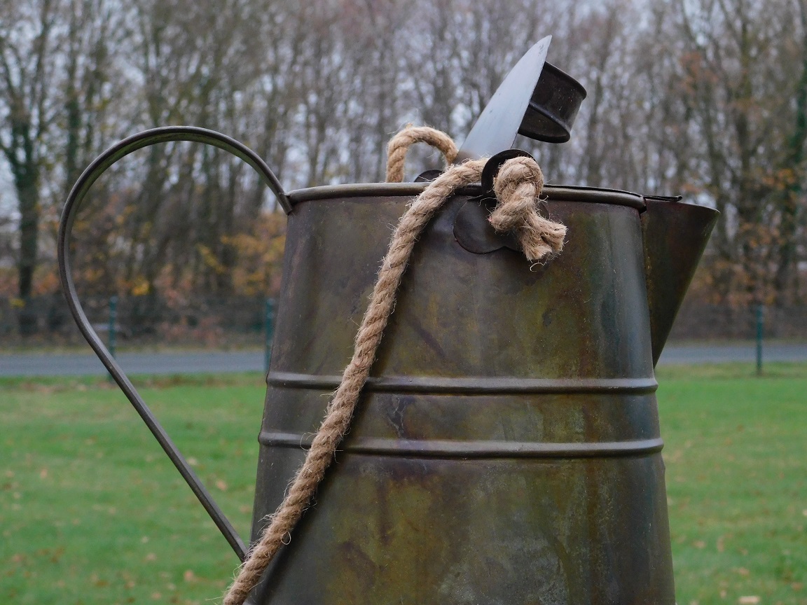 Dank der robusten Kordel können Sie die Kanne nicht nur hinstellen, sondern auch stilvoll aufhängen – perfekt als einzigartige Dekoration in Ihrem Zuhause oder Garten.