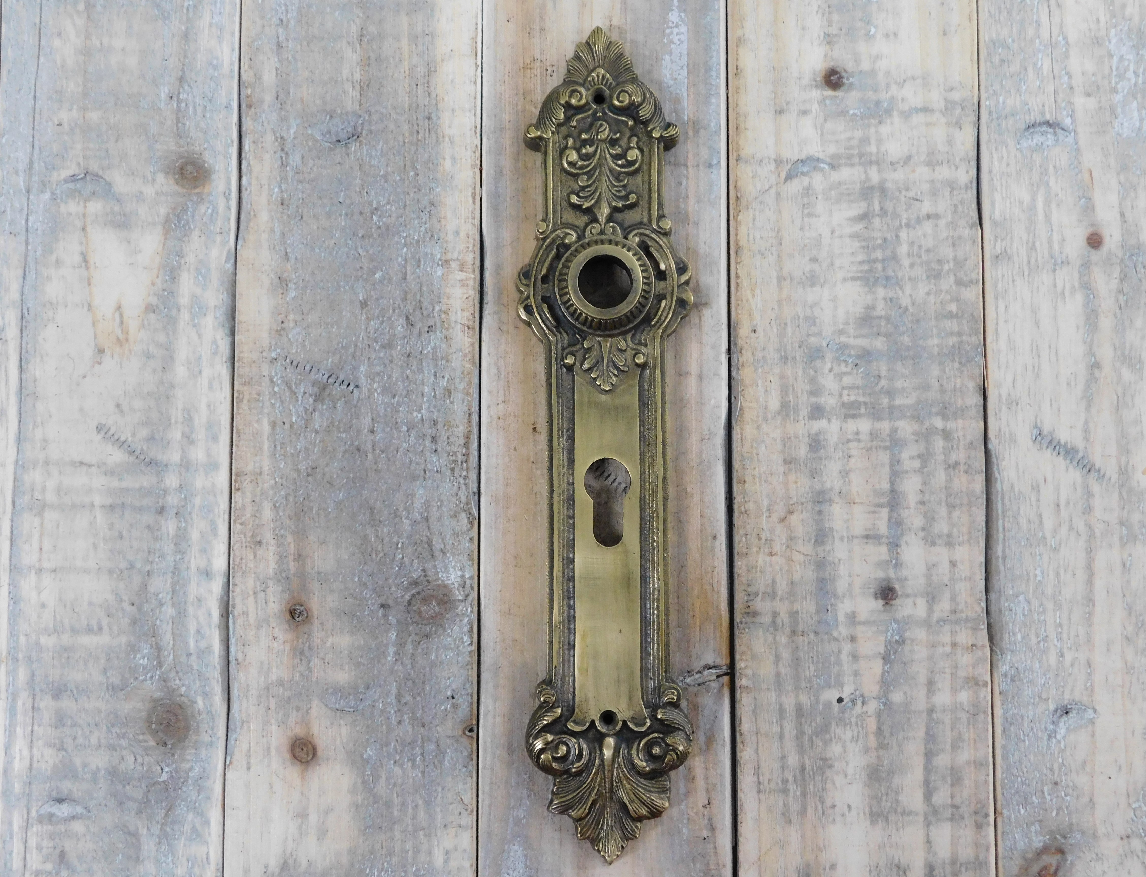 Deze deurplaat is voor de buitenzijde van een deur. Het wapenschild is gemaakt van messing patina ( antiek messing ) Het is prachtige historische vorm, waardoor uw voordeur een statige uitstraling krijgt. Deze lange plaat uit messing wordt in perfecte uitvoering en van hoge kwaliteit geleverd, daardoor past deze antiek messing deurbeslag zowel op originele antieke en historische deuren en evenzo op nieuw vervaardigde deuren.