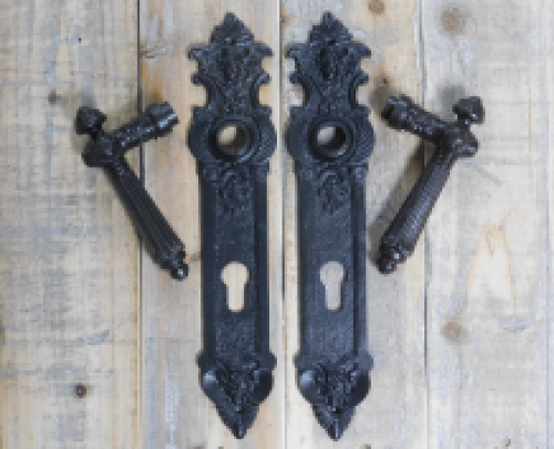 Diese Türklinken-Garnitur verleiht Ihrer Haustür ein überzeugendes Aussehen wie aus der Jahrhundertwende. Die Türbeschläge sind aus Antik-Eisen gefertigt haben eine sehr perfekte und hochwertige Qualität!