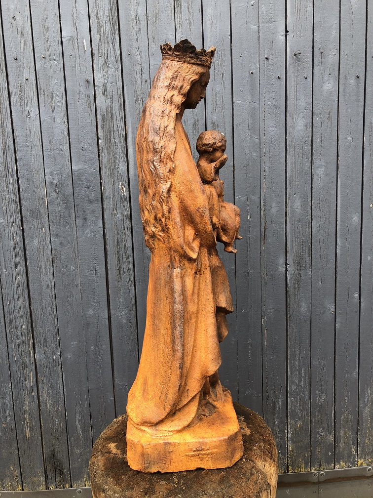 1 x cast iron statue of Mary with Jesus: high approximately 92 cm, 40 cm wide, 40 cm deep, weight approximately 55 kg