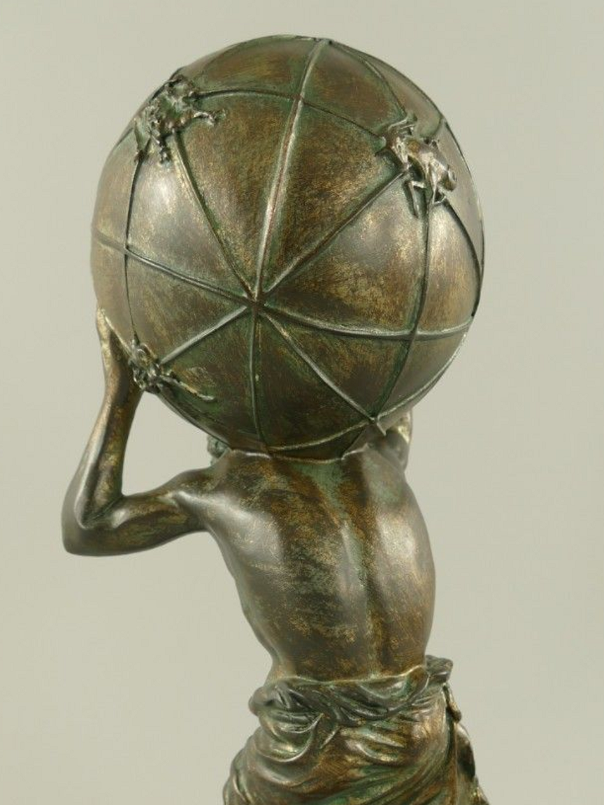 With a height of approximately 42 cm, this Atlas statue has a striking yet elegant presence.