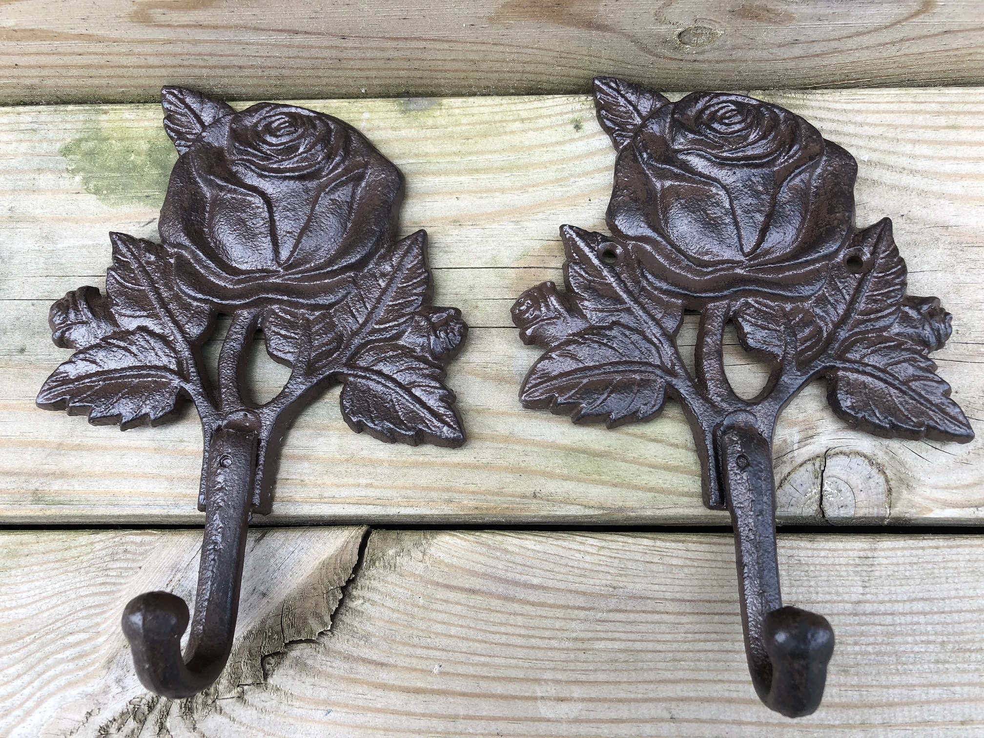 Coat rack set with rose, coat rack set of 2 in cast iron, antique, brown