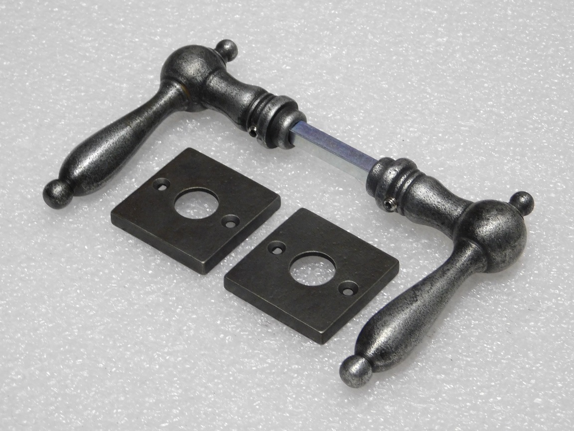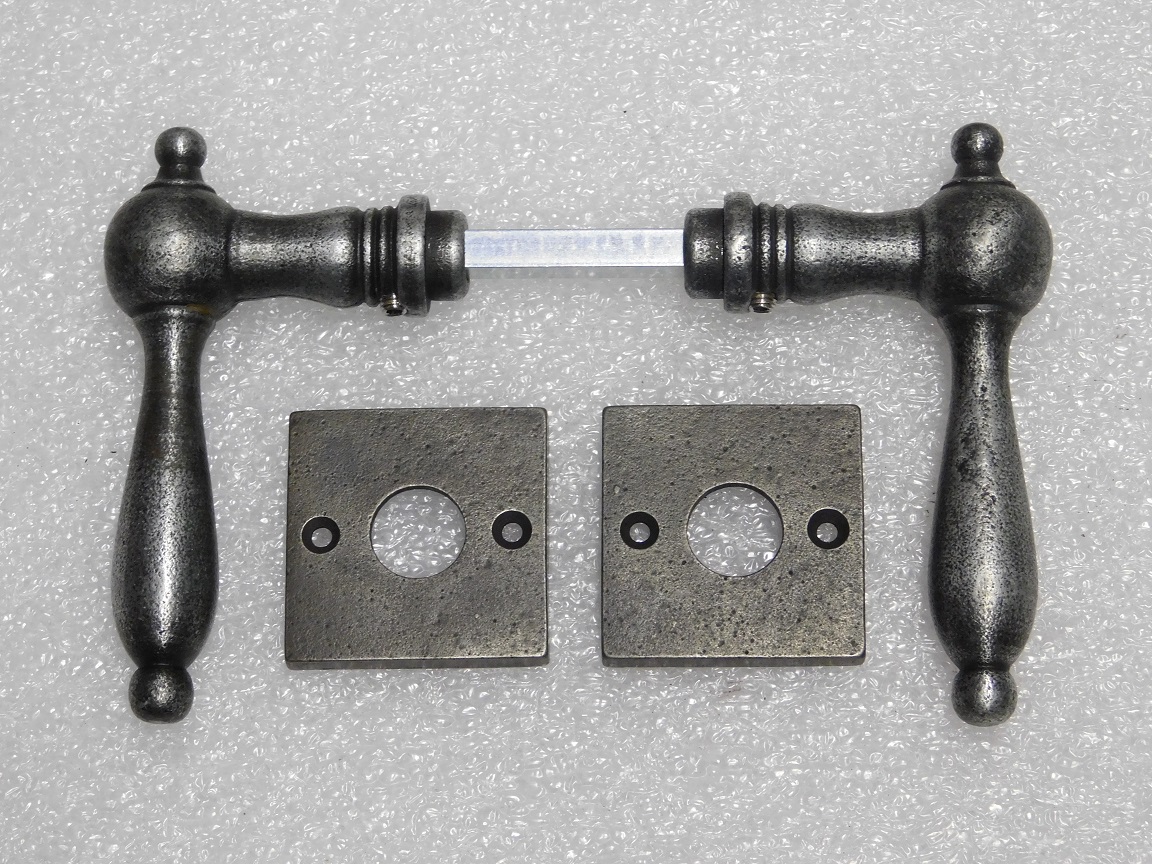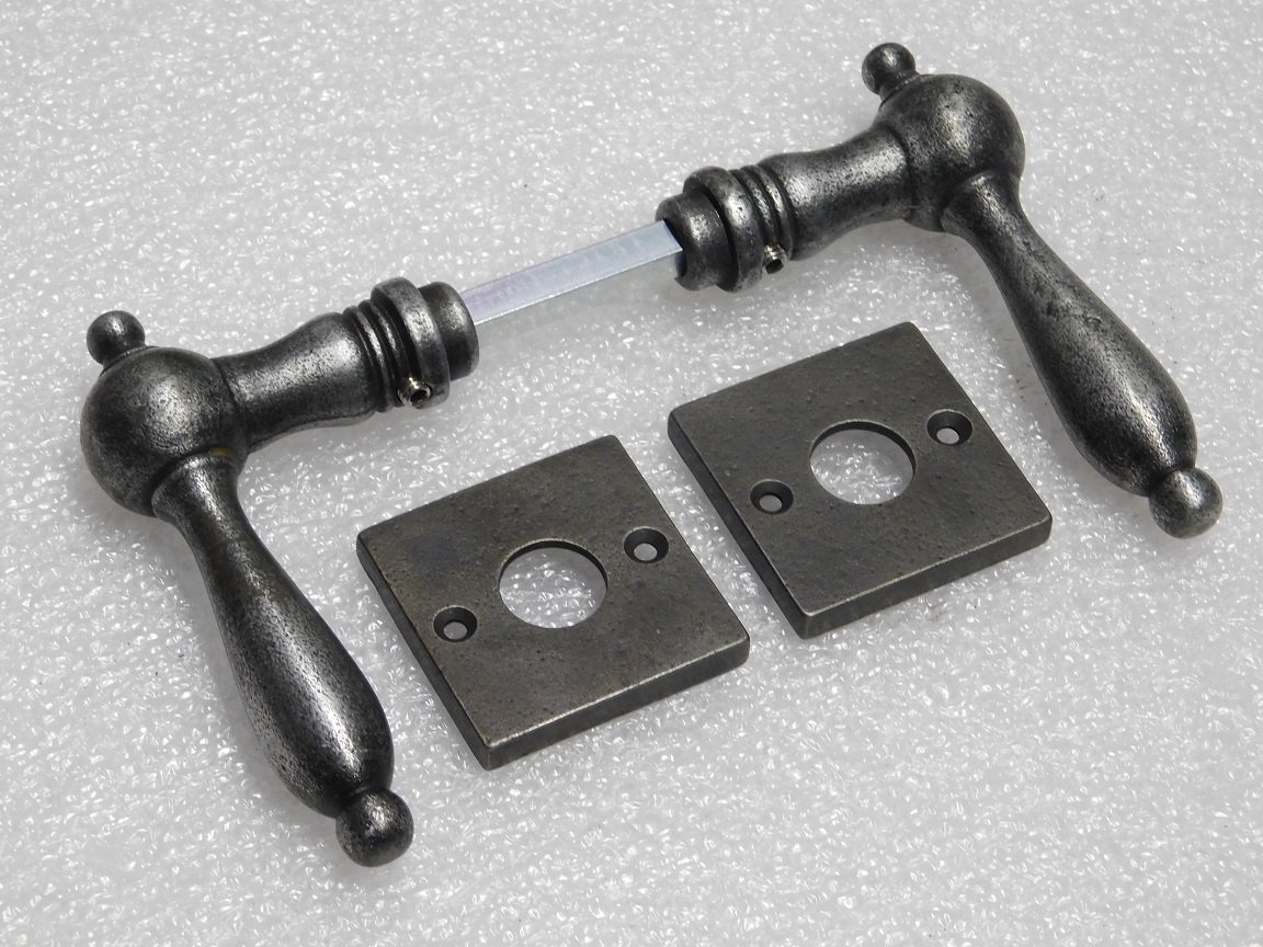 Cambridge Handle Set + Square Handle Rosettes - Galvanised Cast Iron