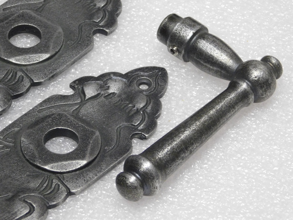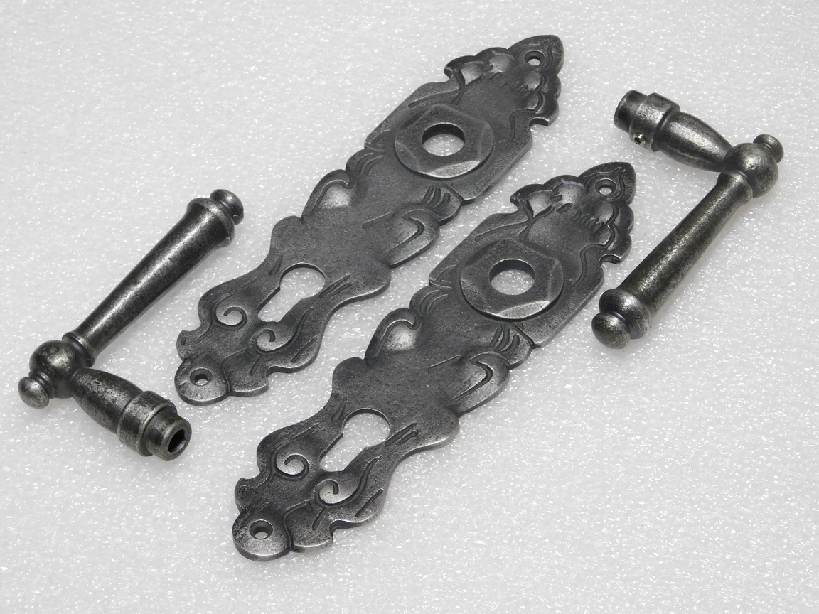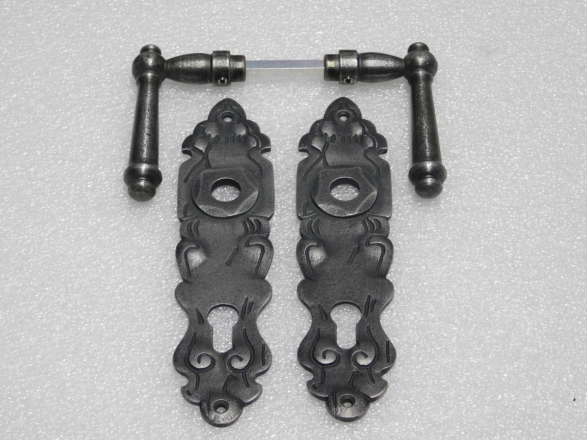 Door Fittings Set - Windsor Handles + Royale PC 92 Door Plates - Cast Iron, Galvanised