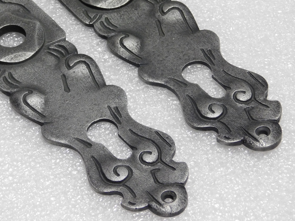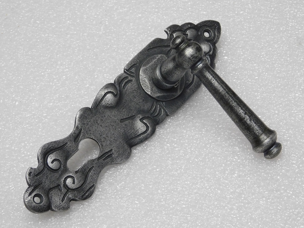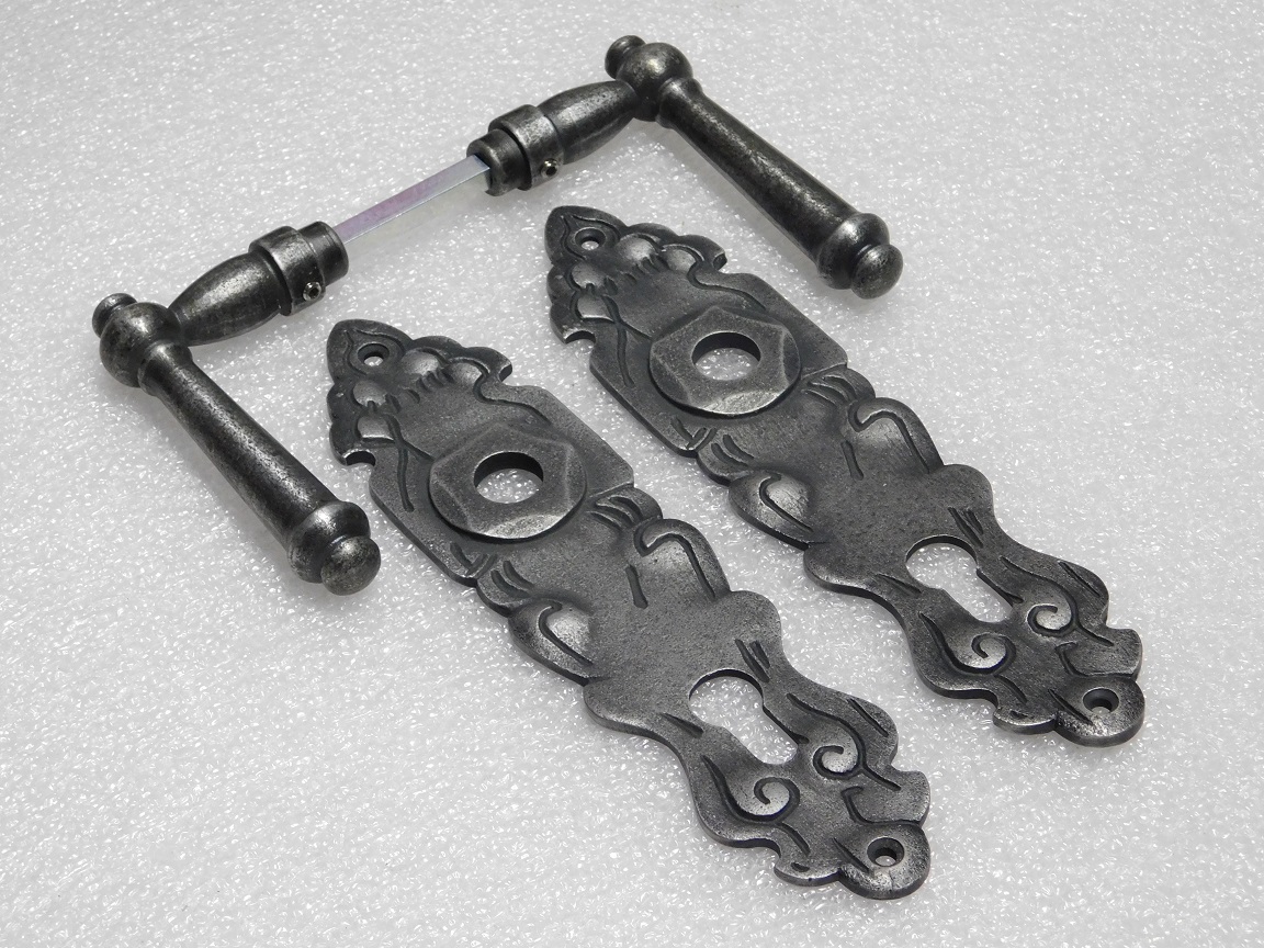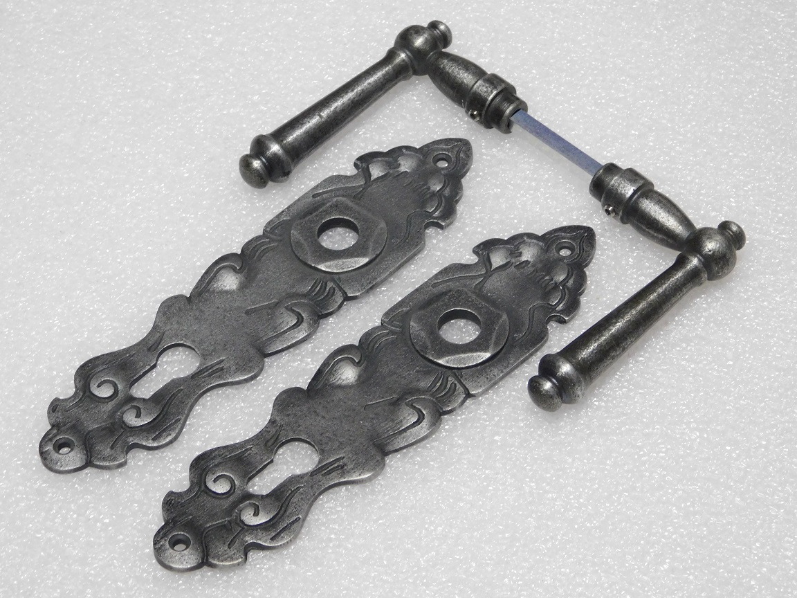 Door Fittings Set - Windsor Handles + Royale PC 92 Door Plates - Cast Iron, Galvanised