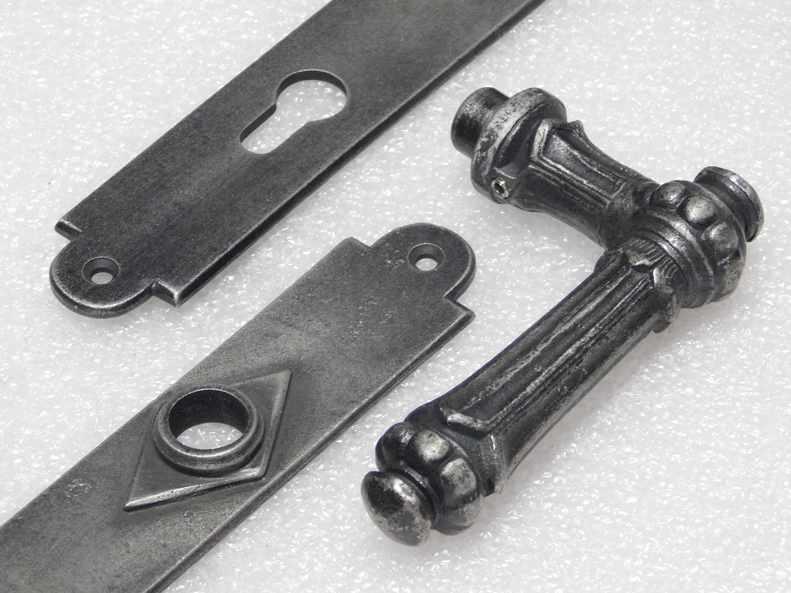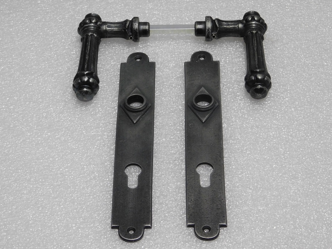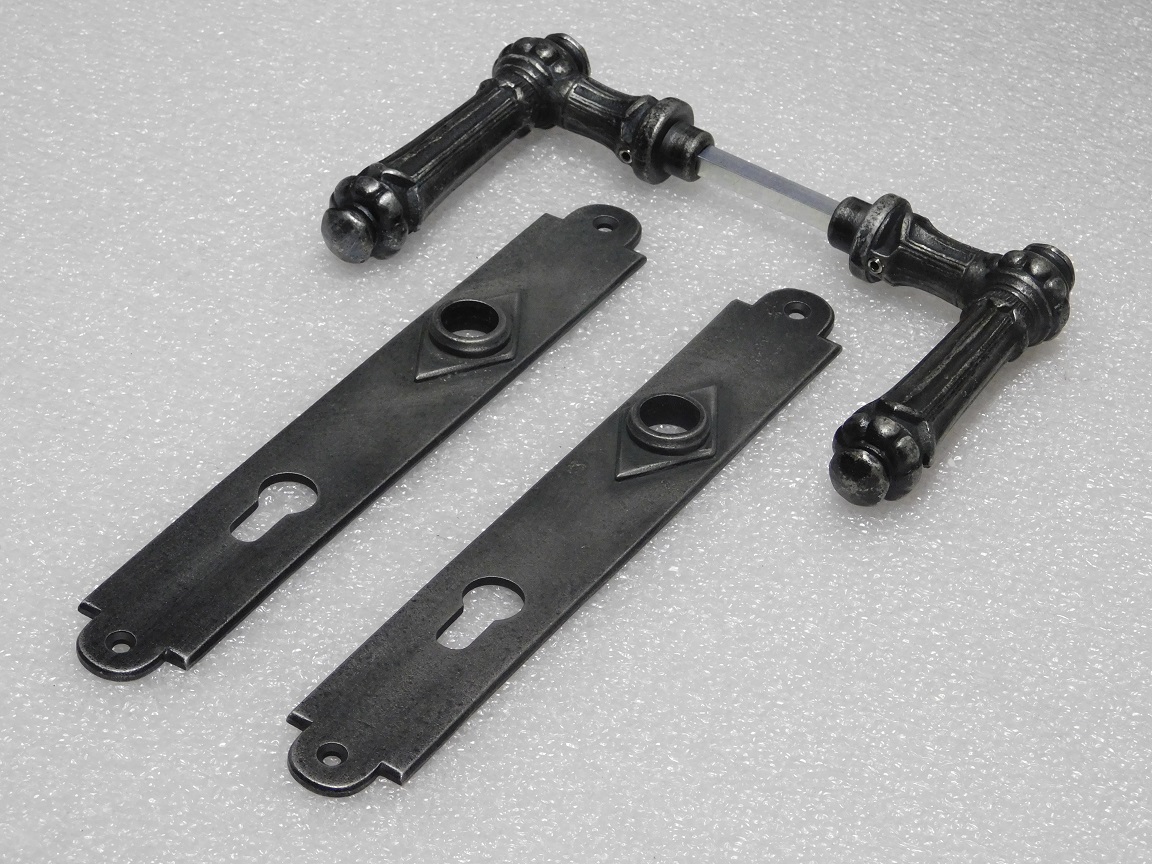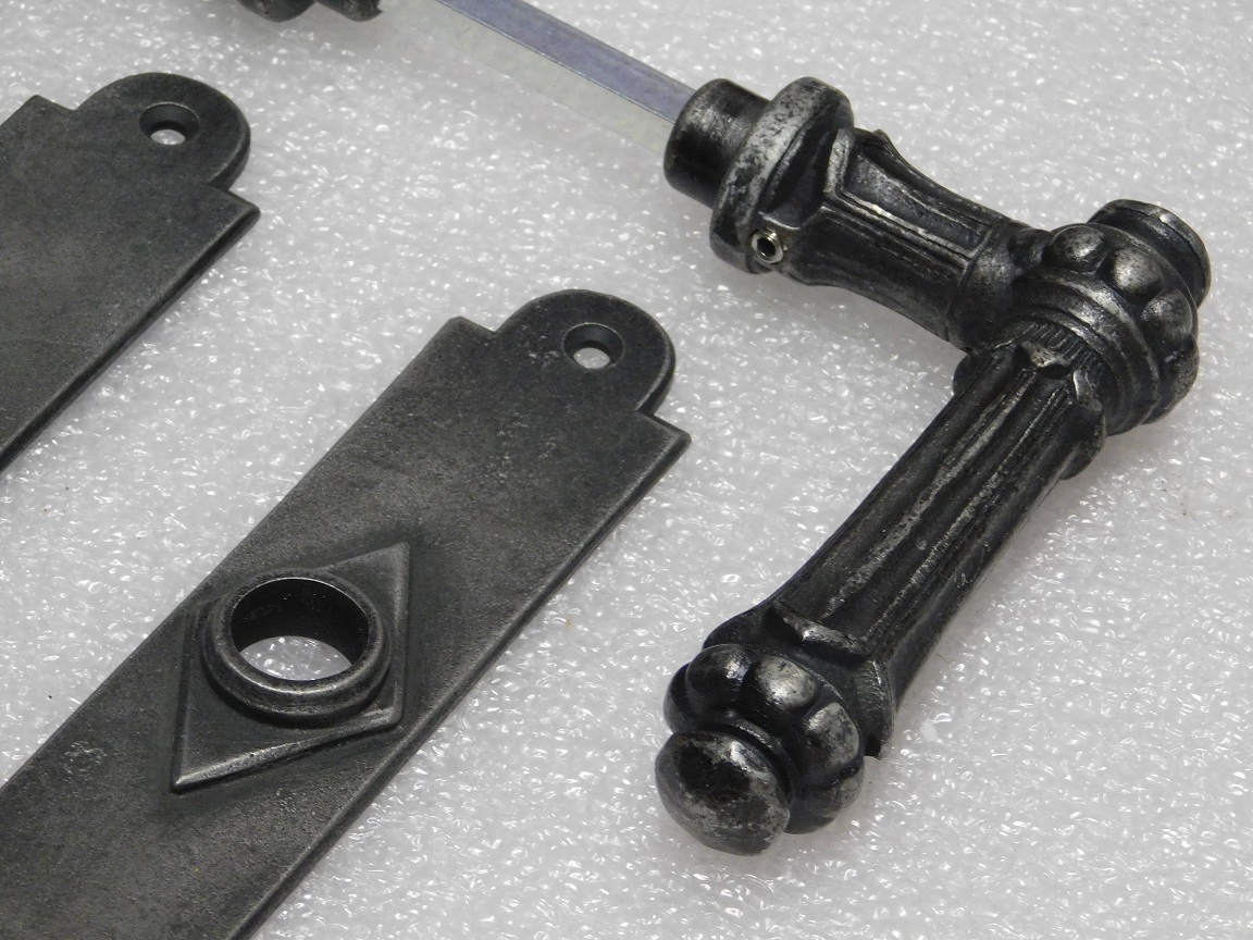 Door Hardware Set - Oxford Handles + Prestige PC 92 Door Plates - Cast Iron, Galvanised