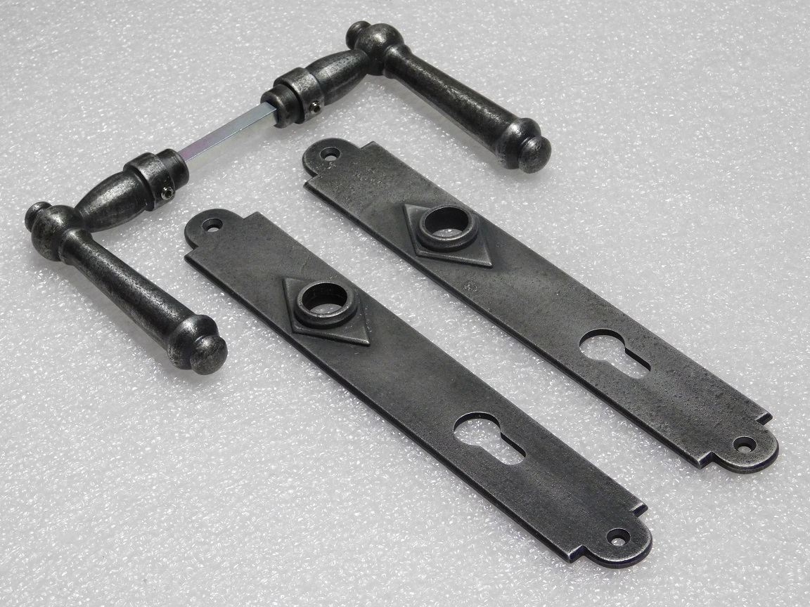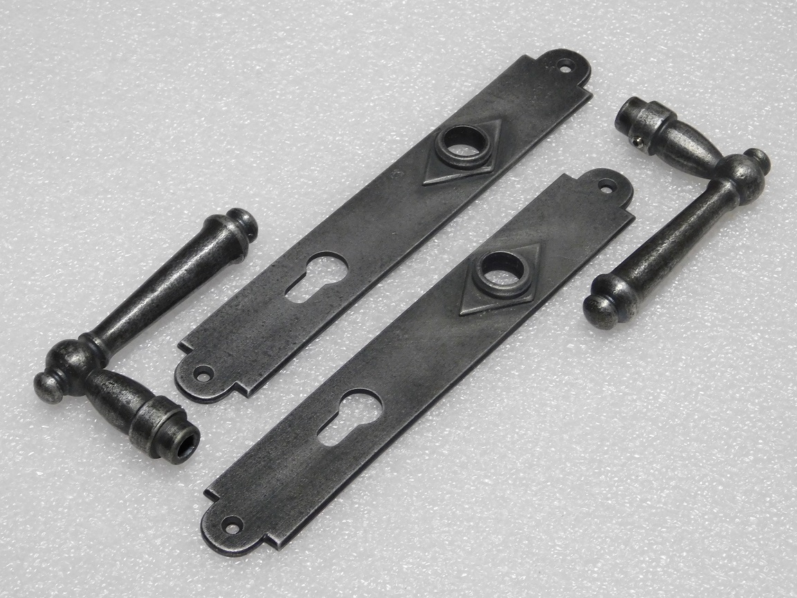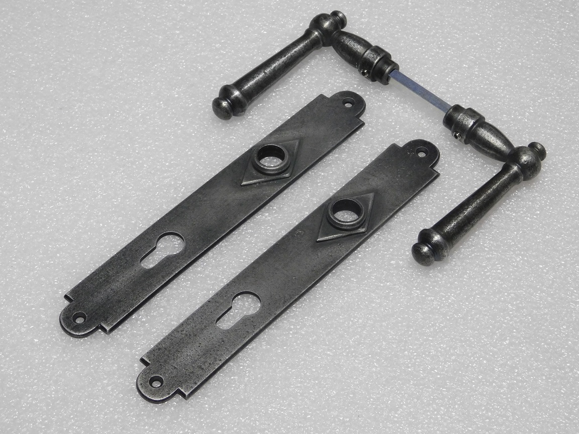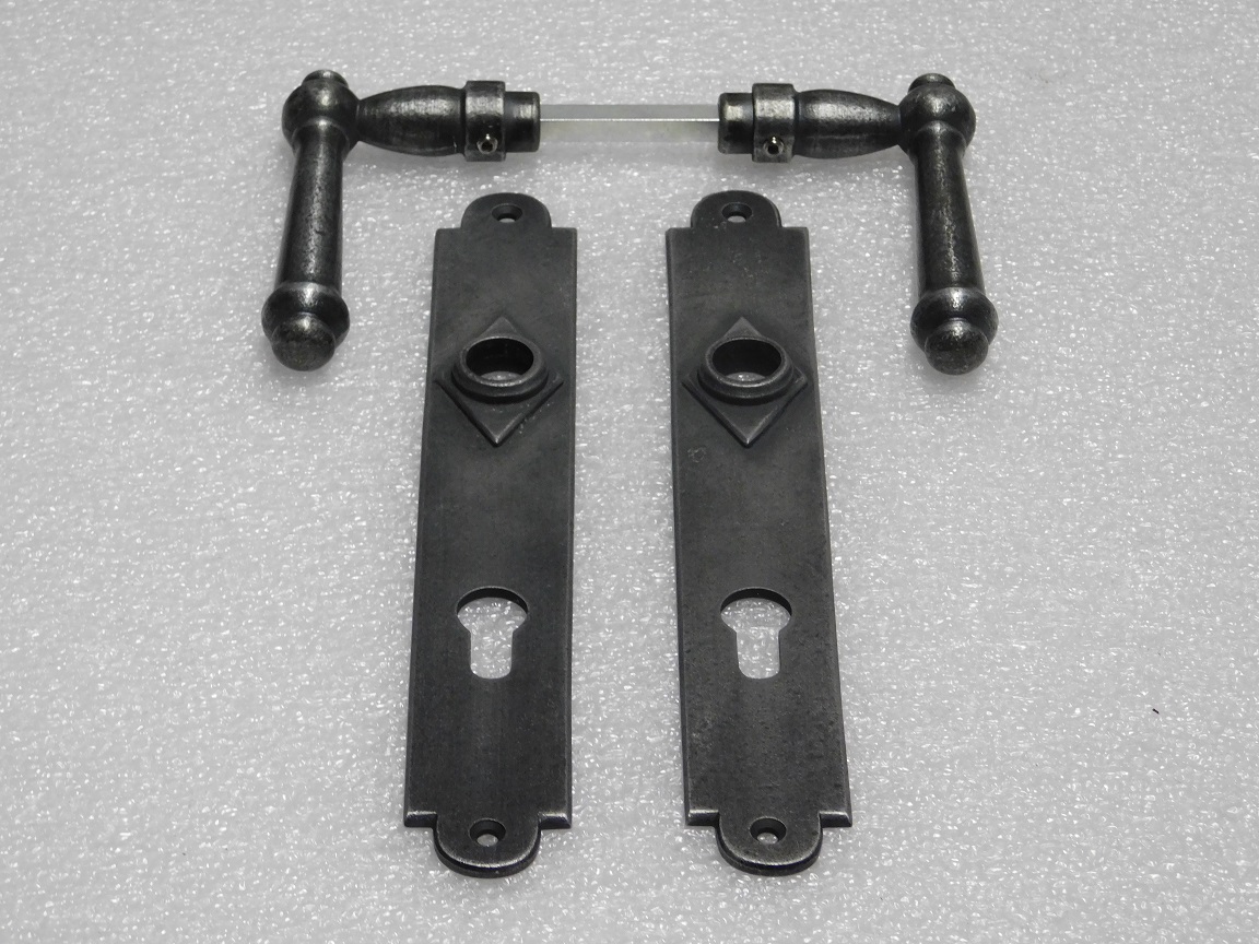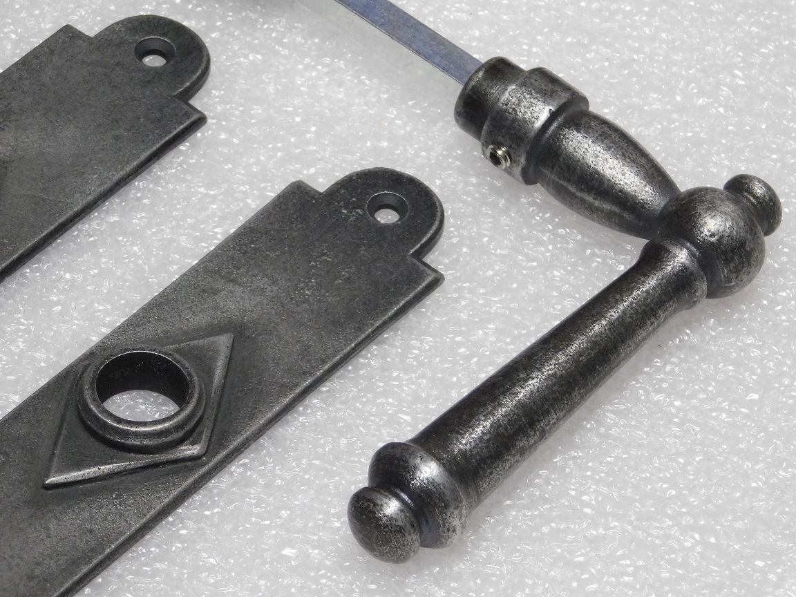 Door Hardware Set - Windsor Handles + Prestige PC 92 Door Plates - Cast Iron, Galvanised