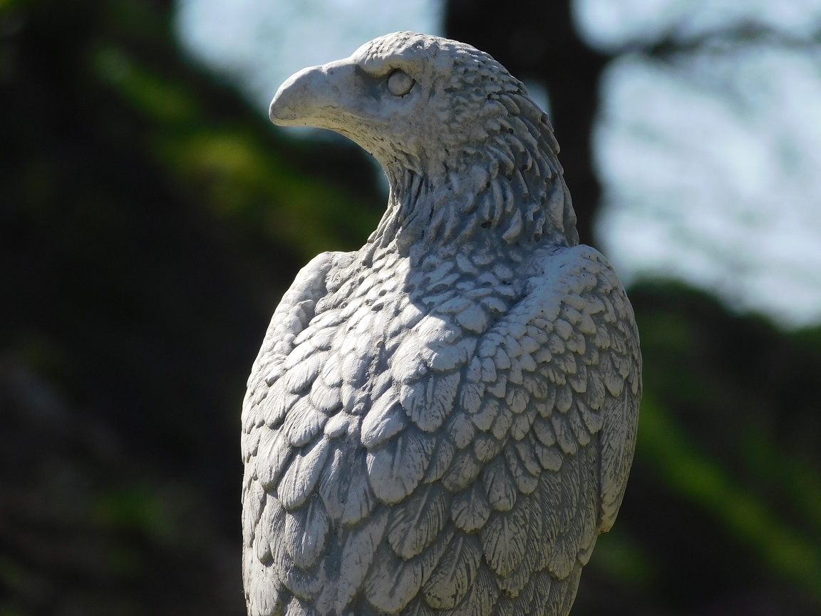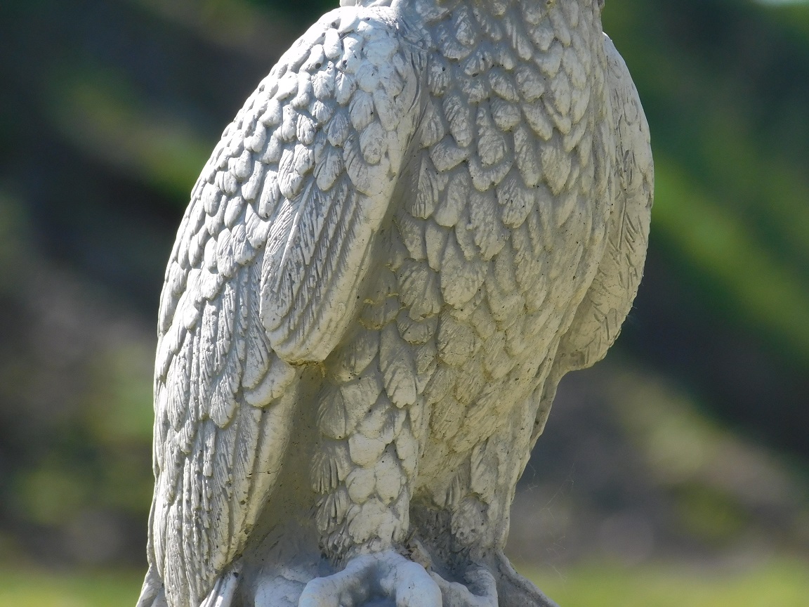 The statue has been carefully crafted, with the feather structure and powerful talons rendered in lifelike detail.