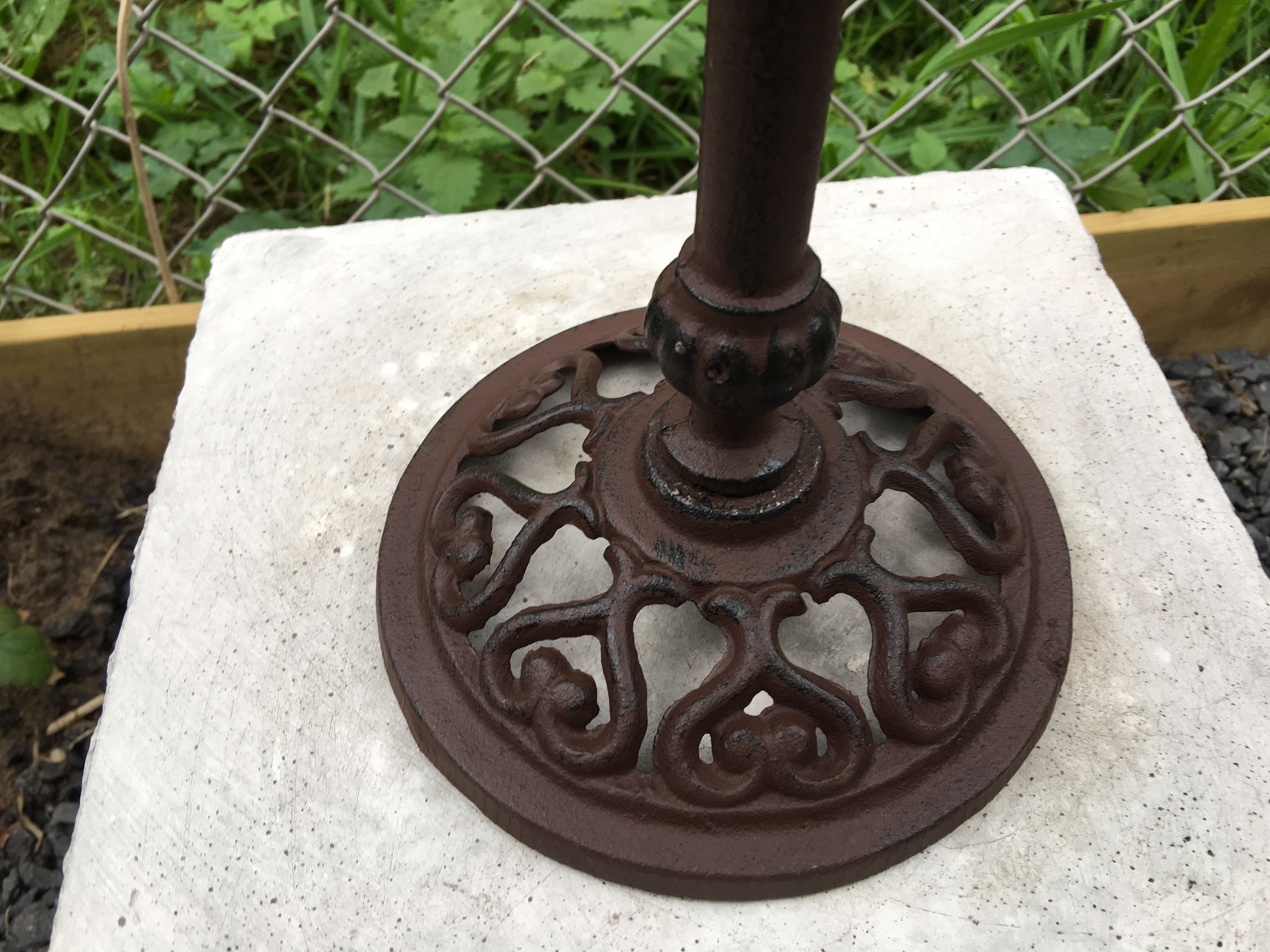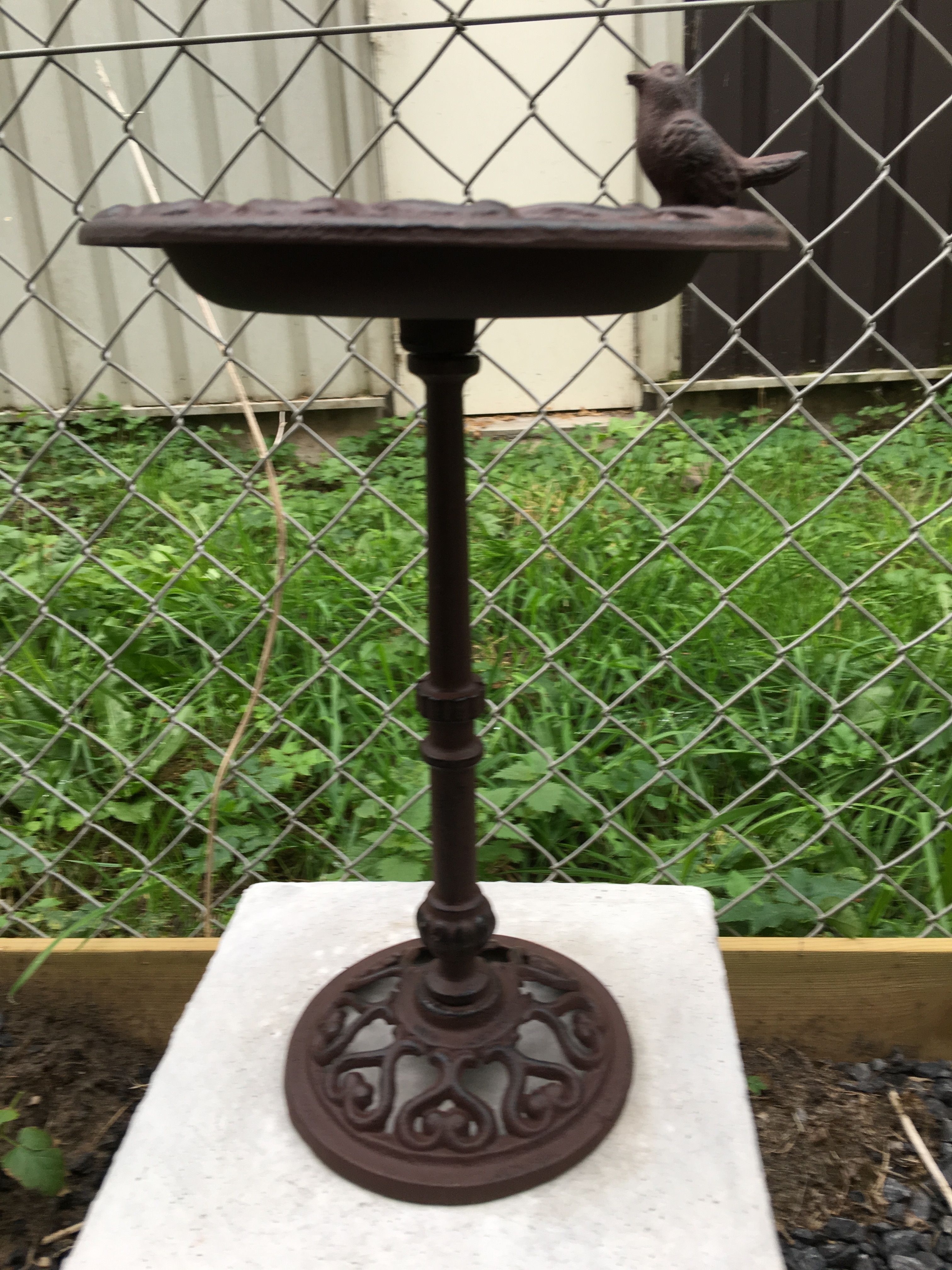 1 bruin vogelbad, gietijzer bruin-rust, gemoffeld, mooi!