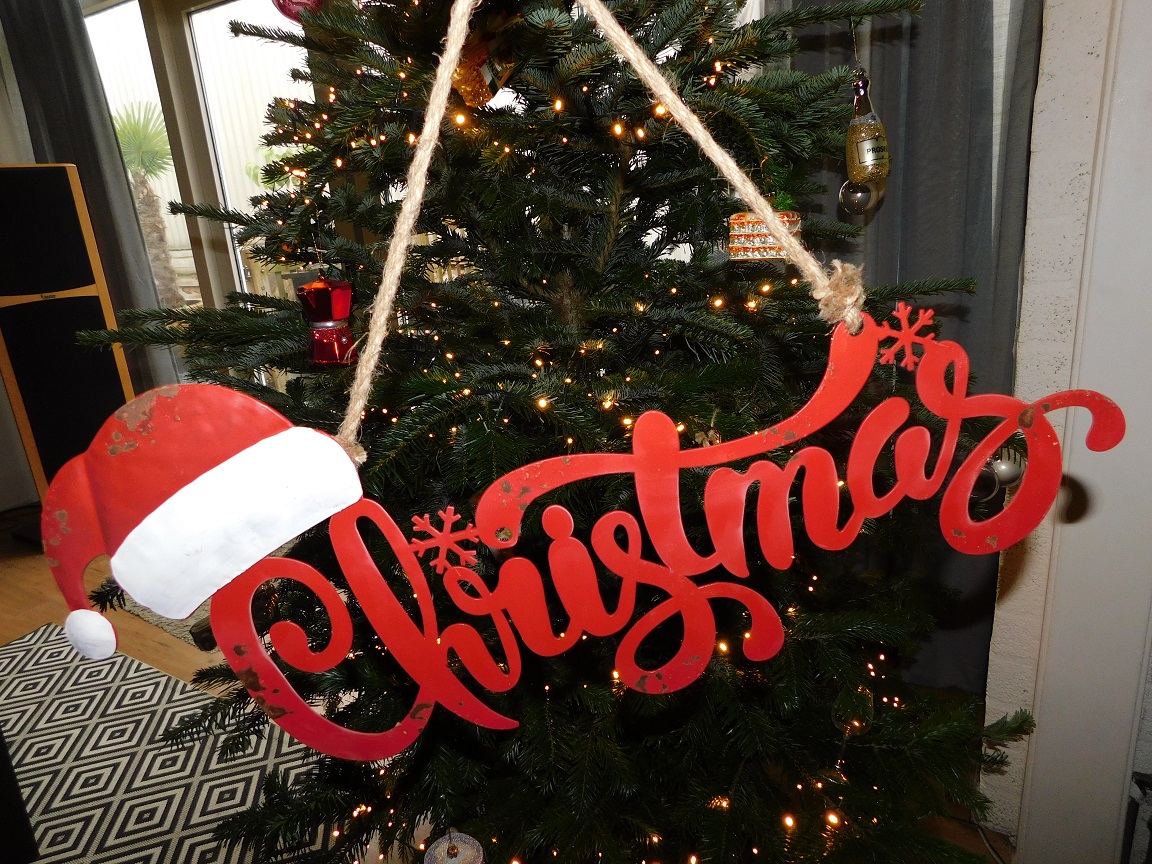 Een leuke hanger met de tekst ''Christmas'', gemaakt van old metaal, antiek look.