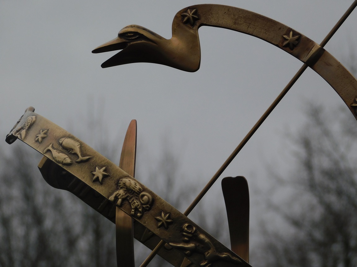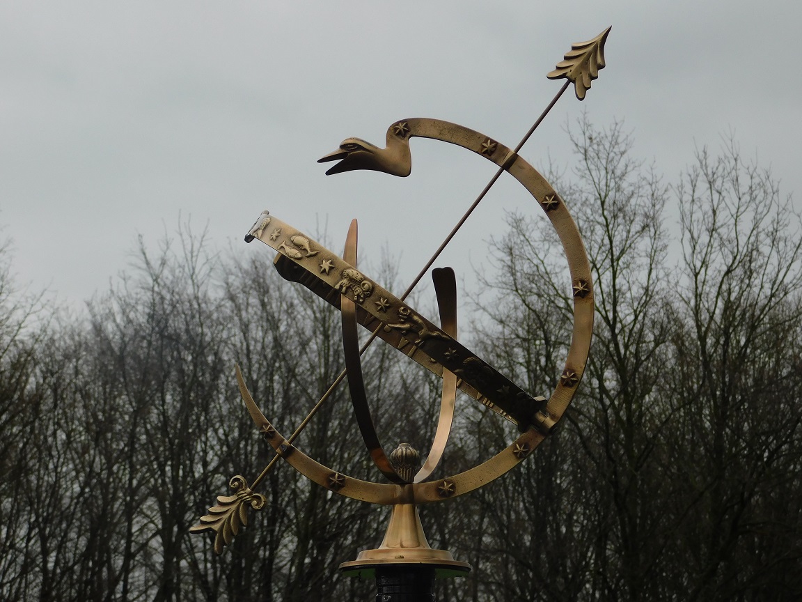 Extraordinary brass sundial with constellation indication and roman numerals, beautiful design.