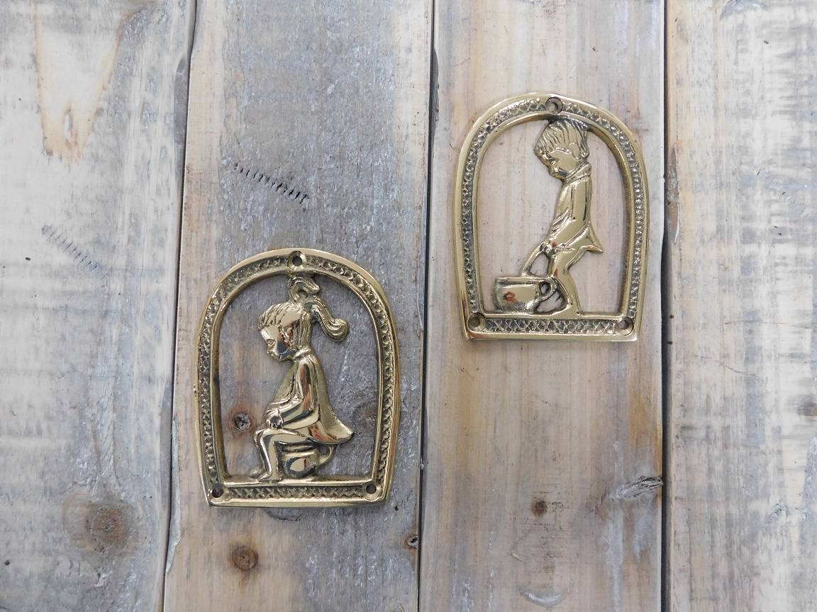 Levering: 2 x wc deur teken, * Jongen en Meisje *, messing