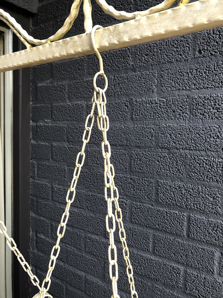 1 Hangende Mand met ophang ketting en haak, ijzer in old-white.