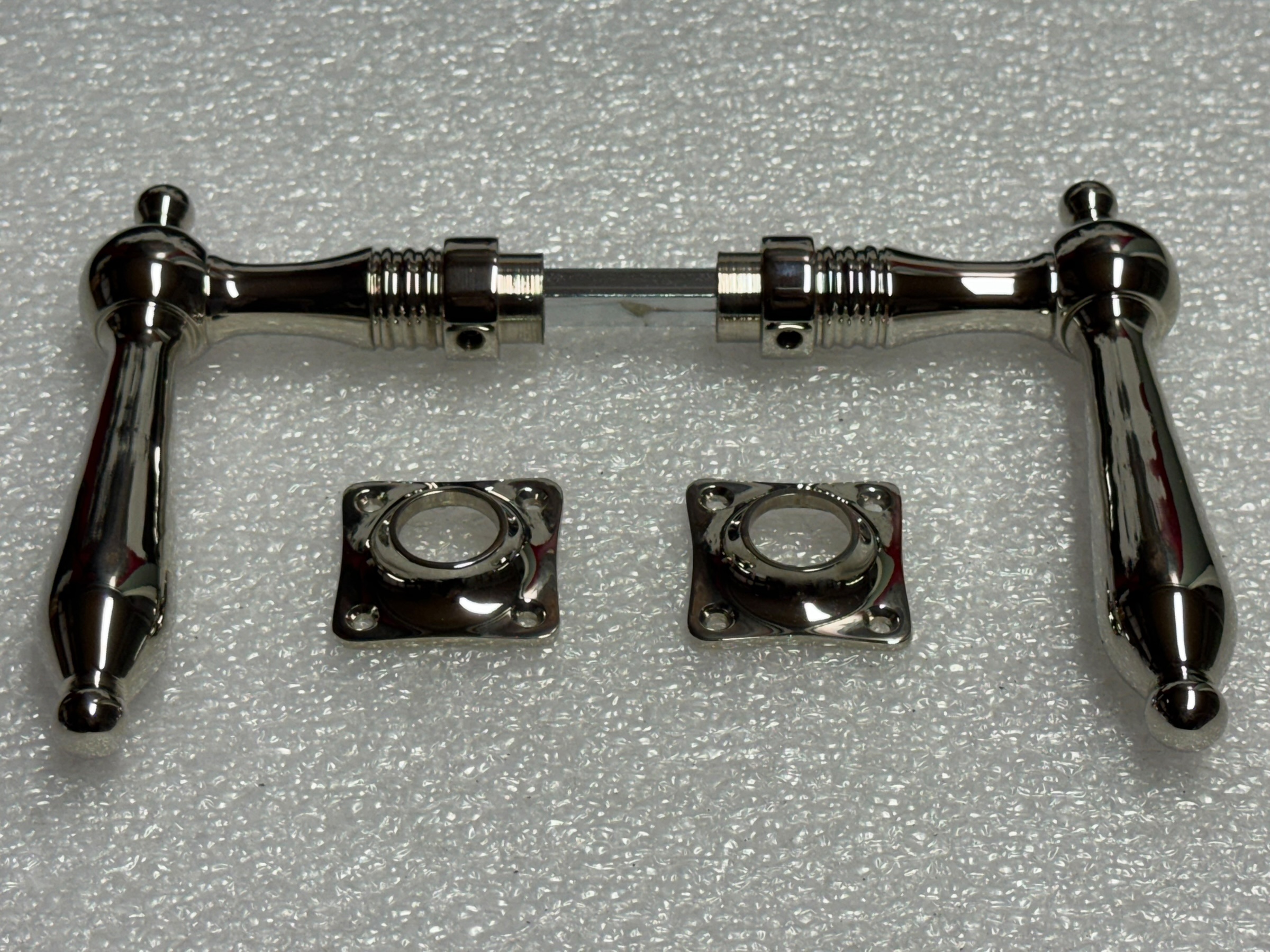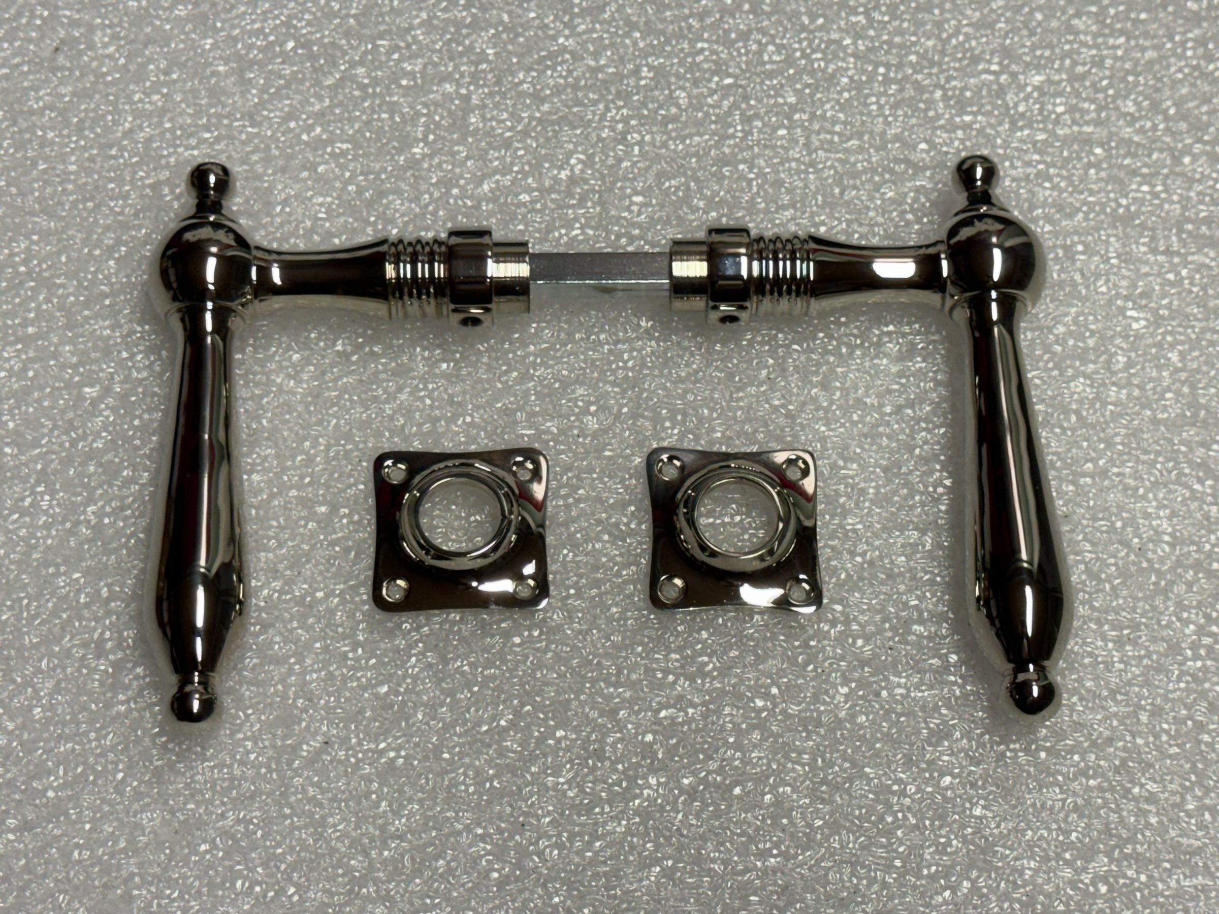 Deurbeslag set – nikkel chroom – glanzende klinken en rozetten.