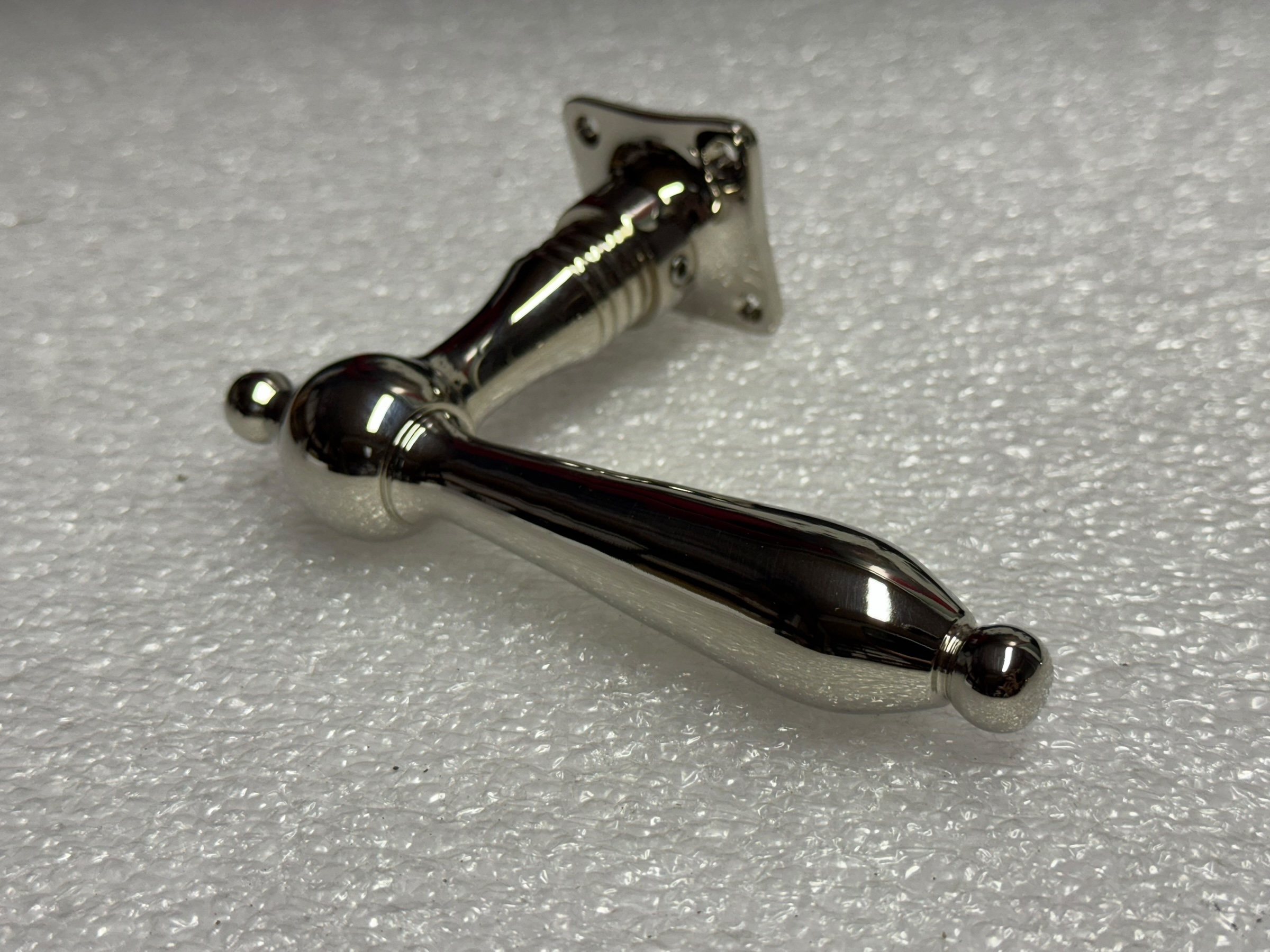 Leveringsomvang: deurbeslag set – 2 deurklinken en rozetten – nikkel chroom glans.