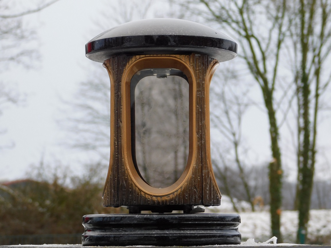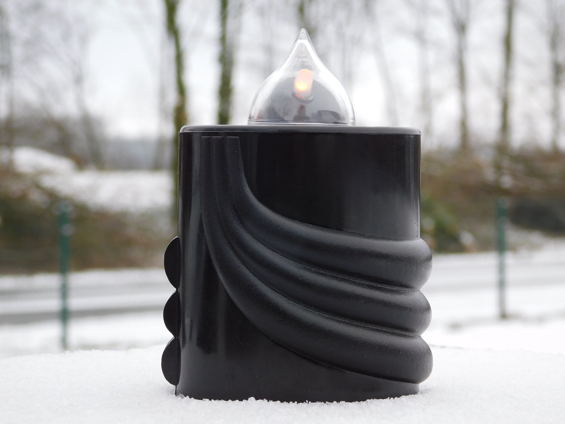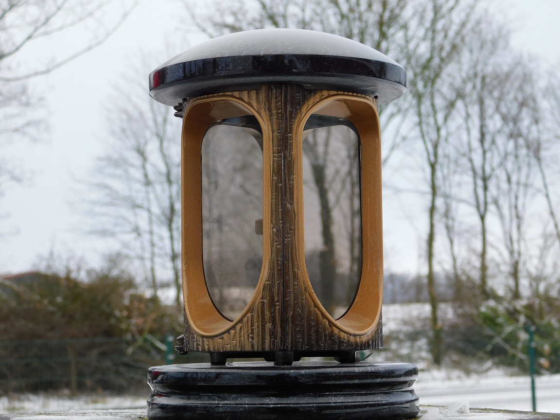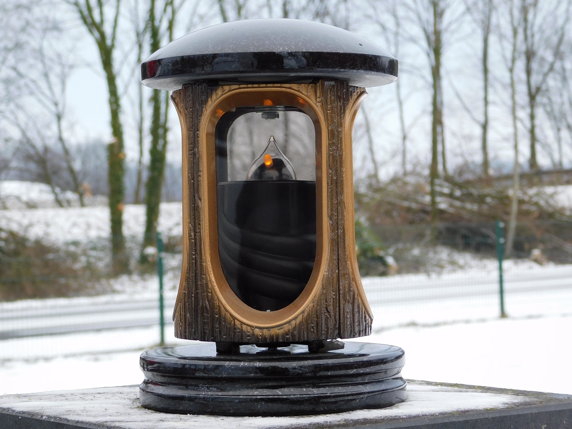 Op de laatste twee foto’s ziet u de elektrische grafkaars in detail en hoe deze prachtig tot zijn recht komt in de lantaarn.