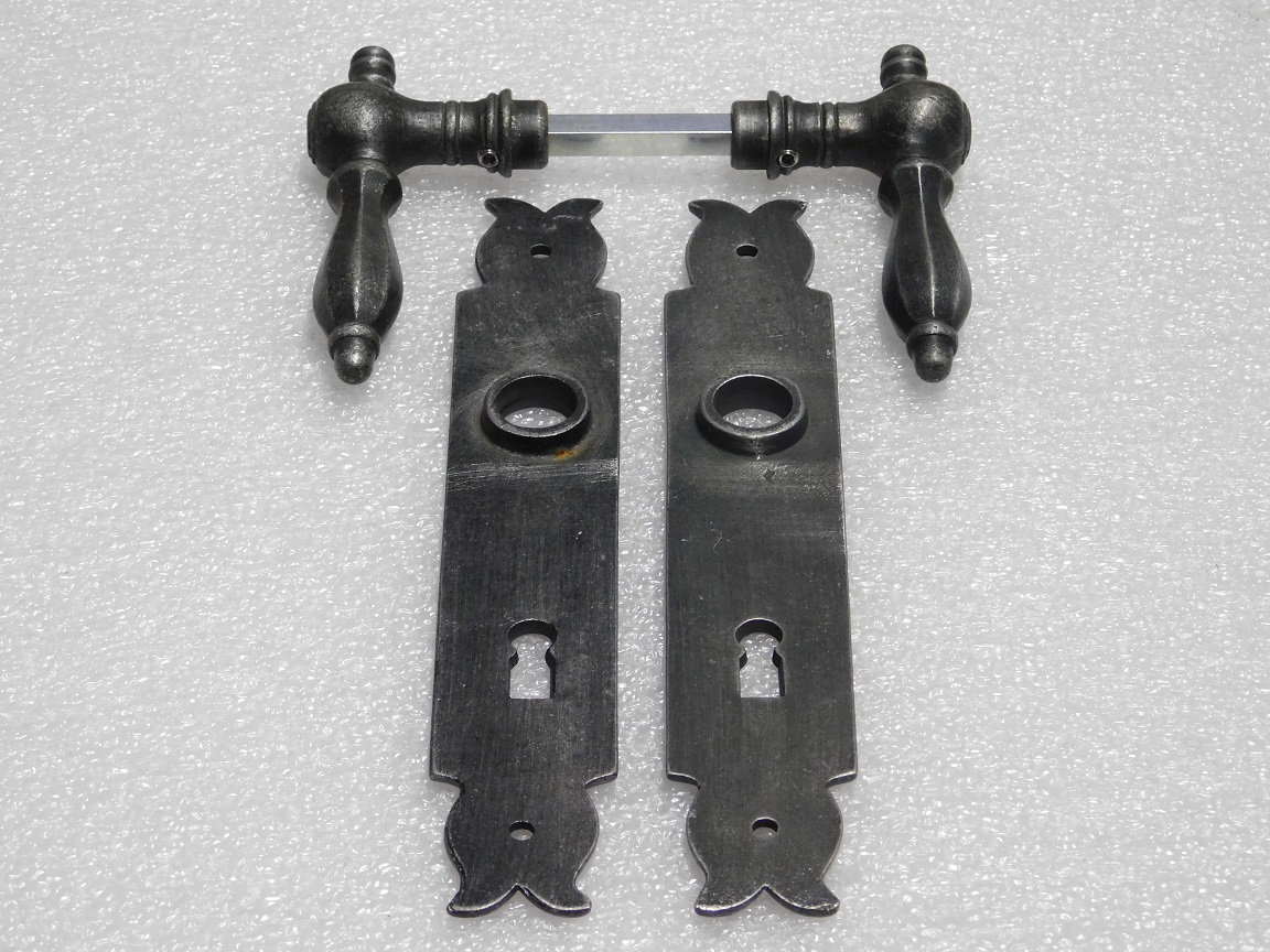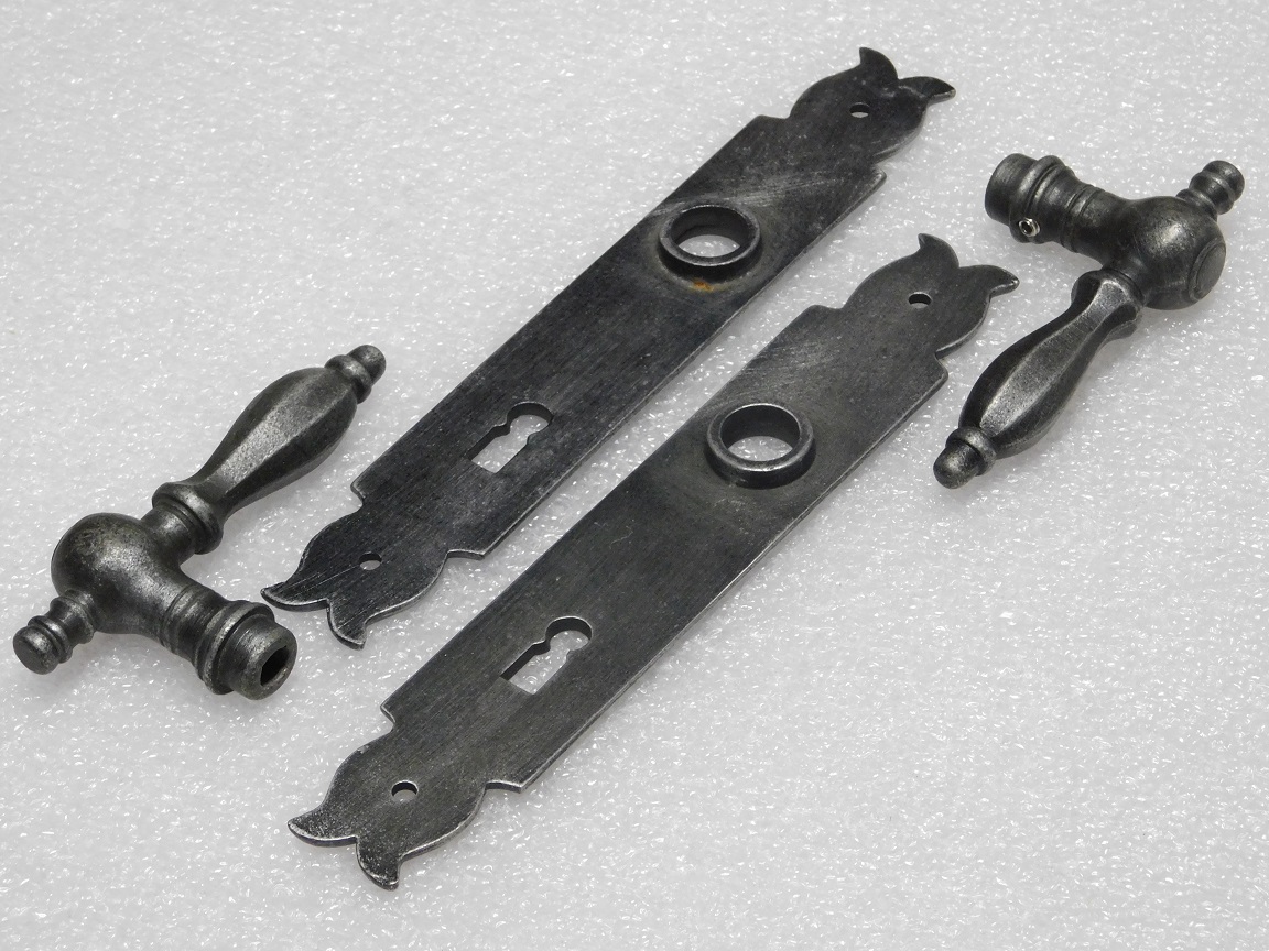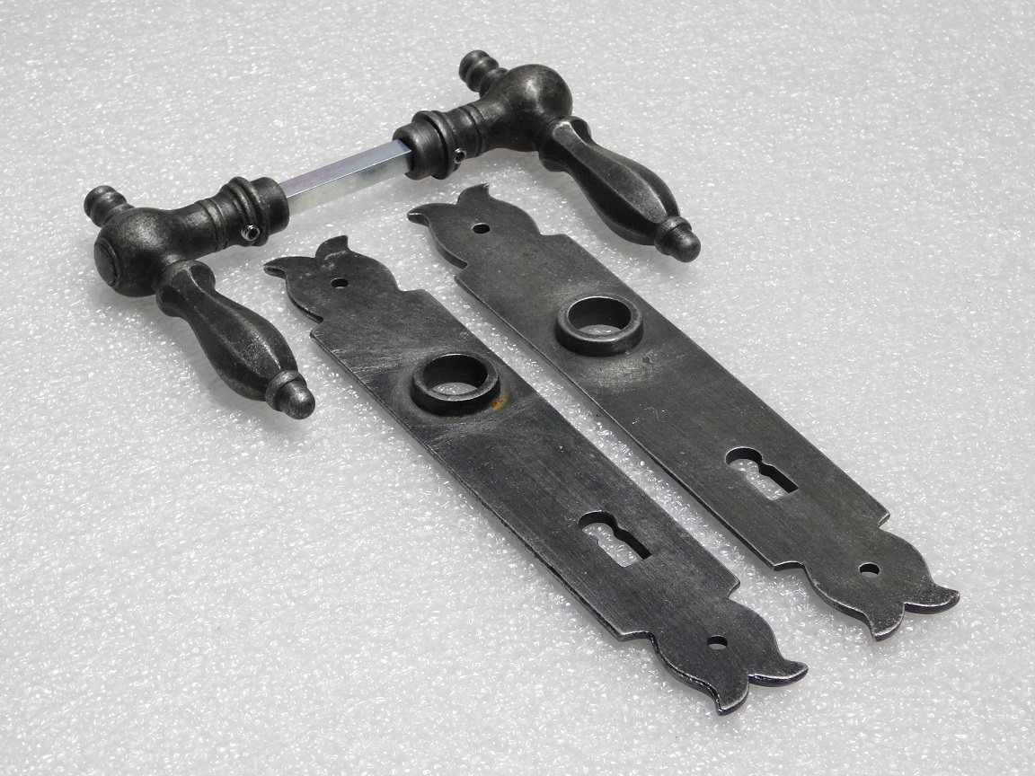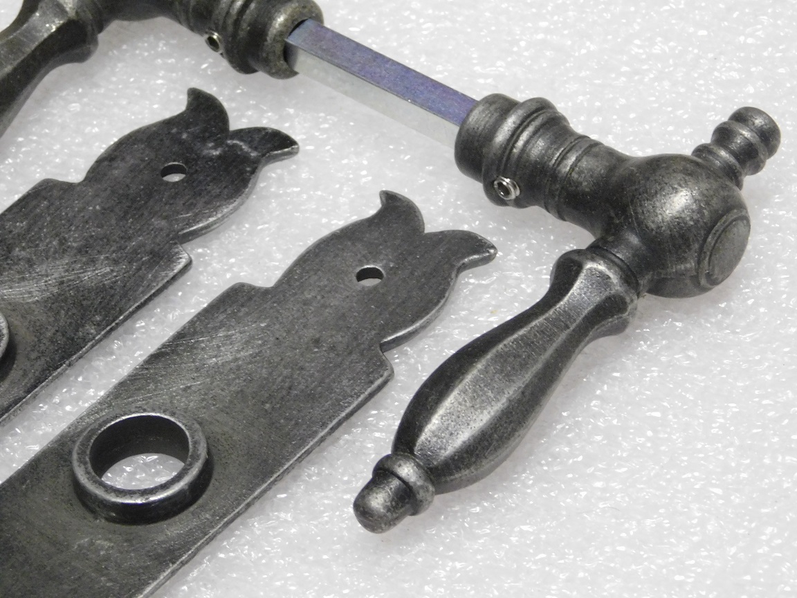 Deze complete set deurbeslag combineert de elegante Kensington deurklinken met de robuuste Baron deurplaten van verzinkt gietijzer