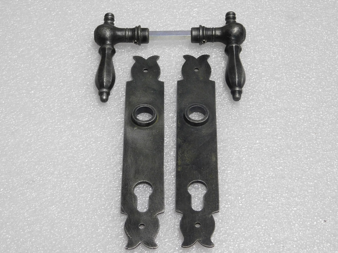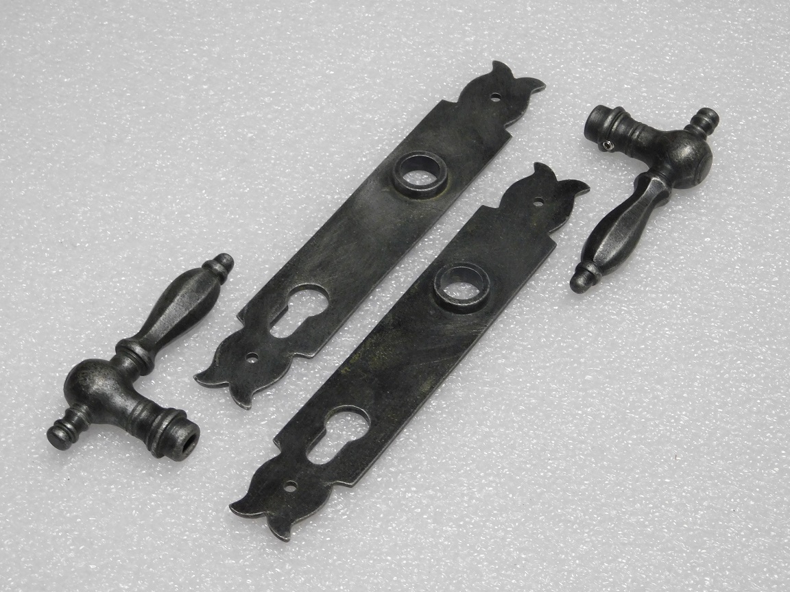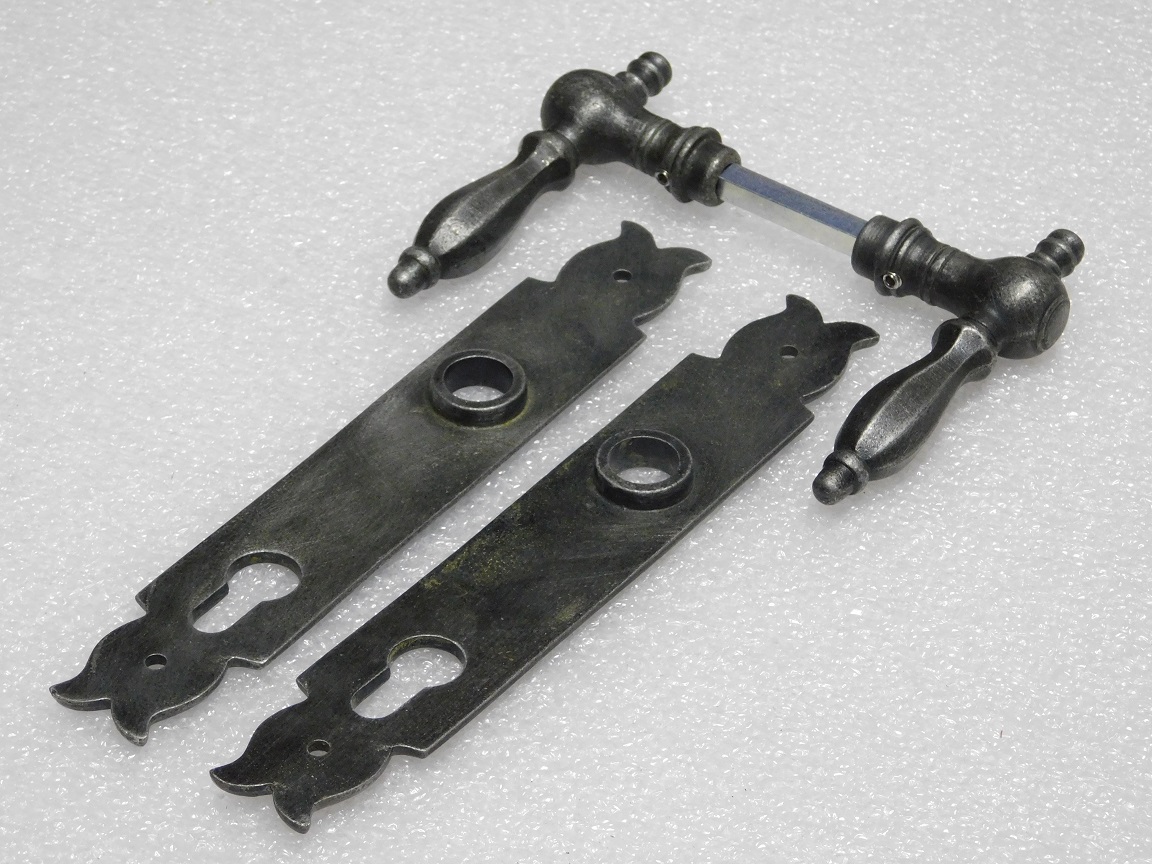 Leveringsomvang: 1x set, 2 klinken + 2 deurpl en krukstift, gietijzer