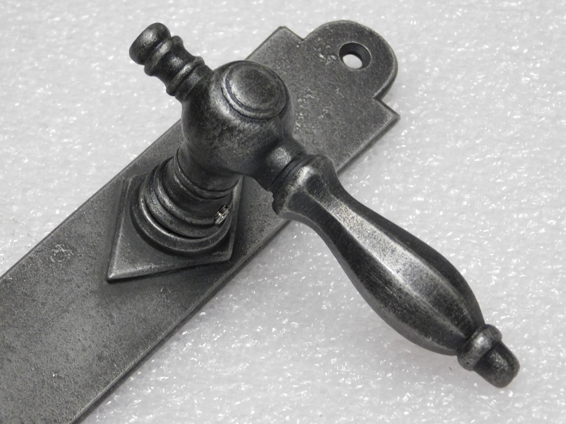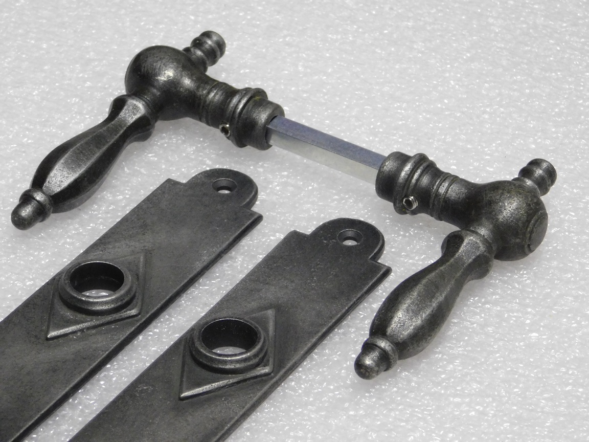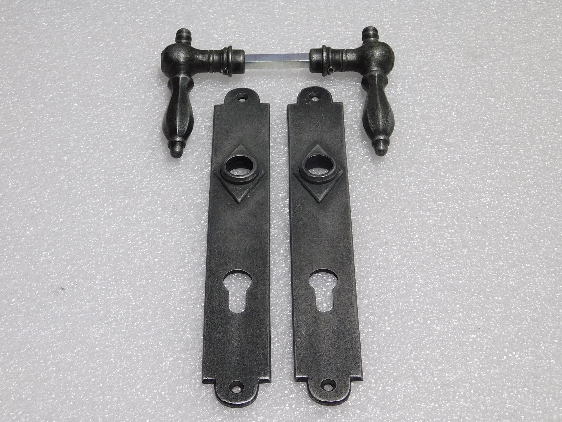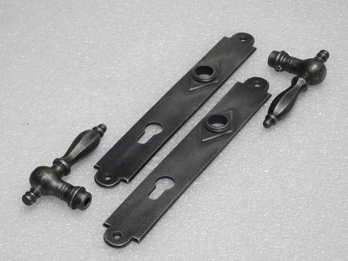 Leveringsomvang: 1x set, 2 klinken + 2 deurpl en krukstift, gietijzer