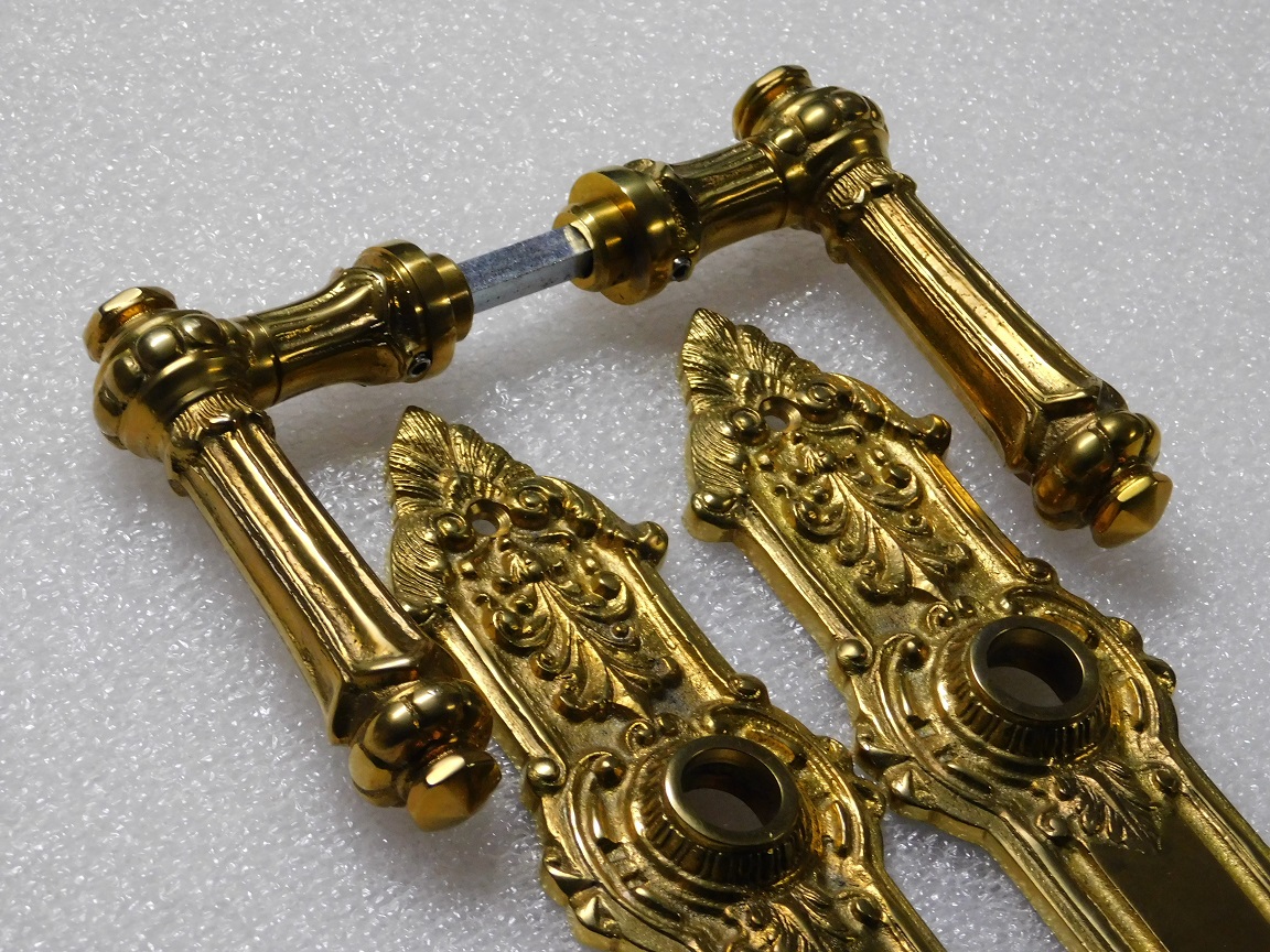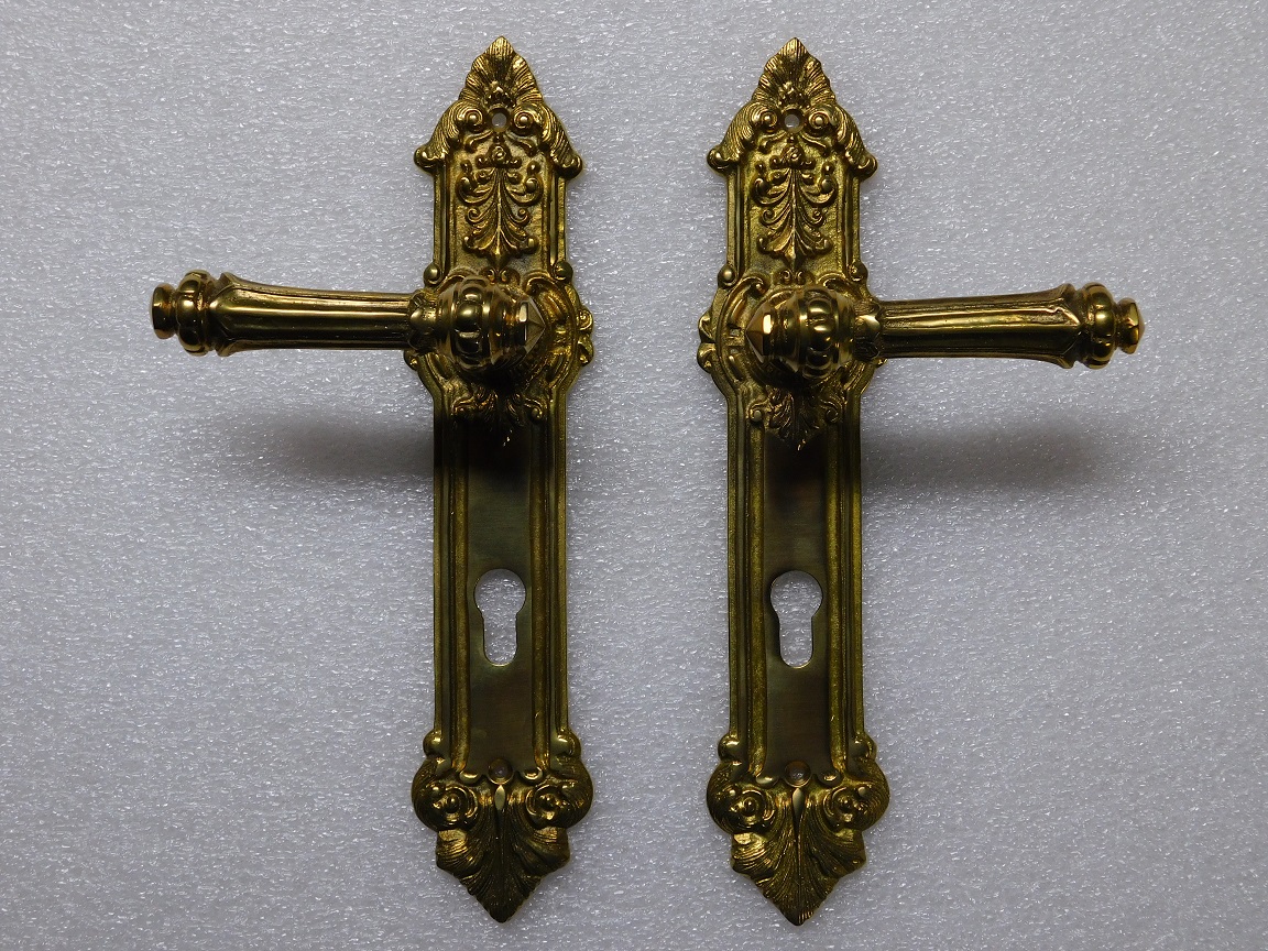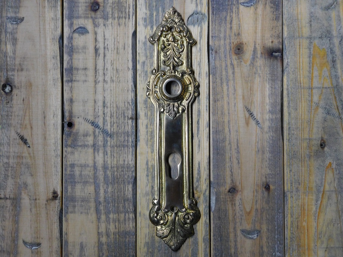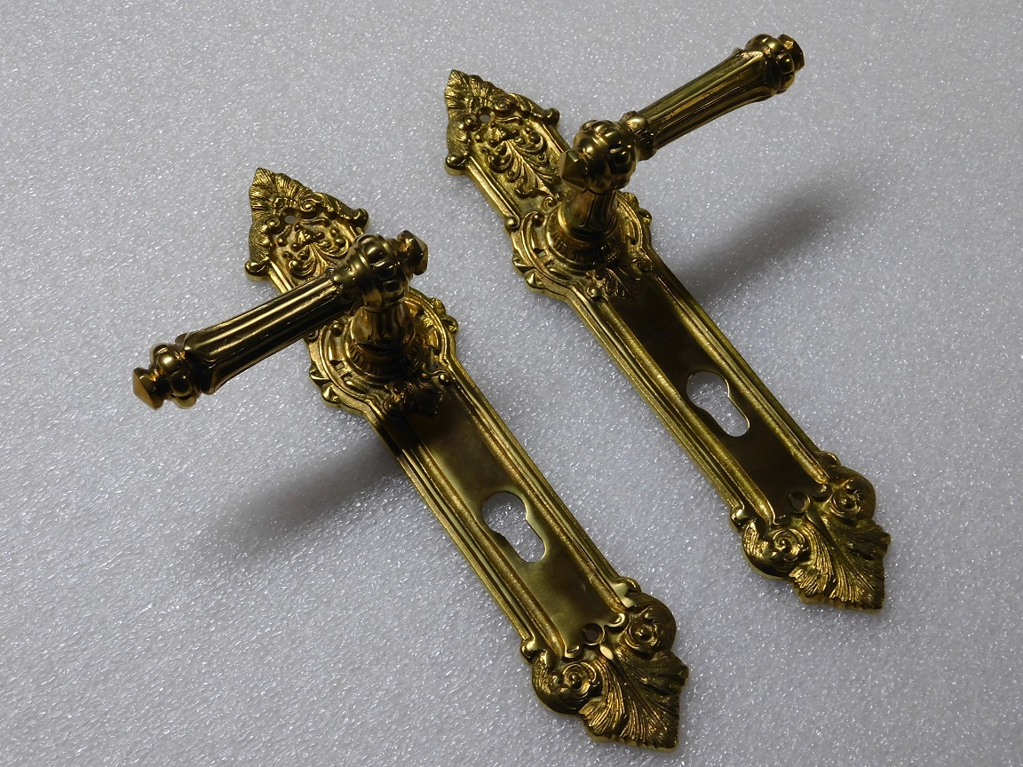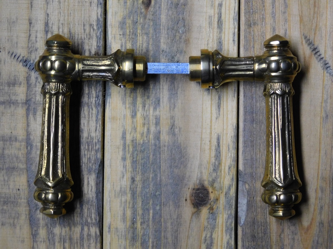 Deze prachtige set deurbeslag bestaat uit twee deurklinken en twee bijpassende deurplaten, uitgevoerd in hoogwaardig messing.