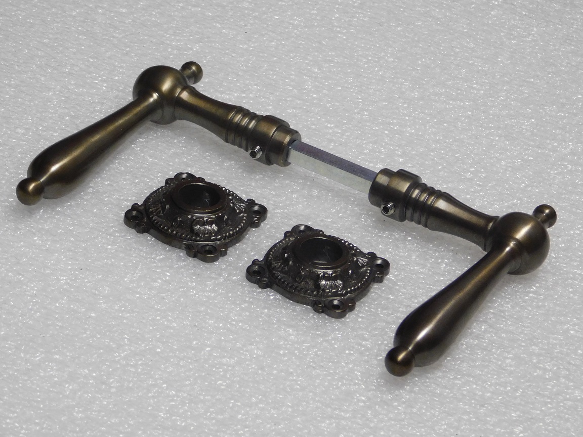Leveringsomvang: 1x set klinken + rozetten, donker gepat. messing