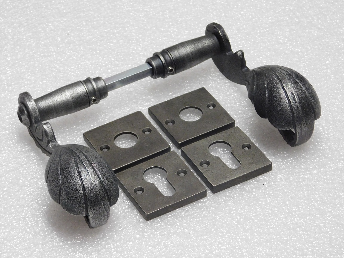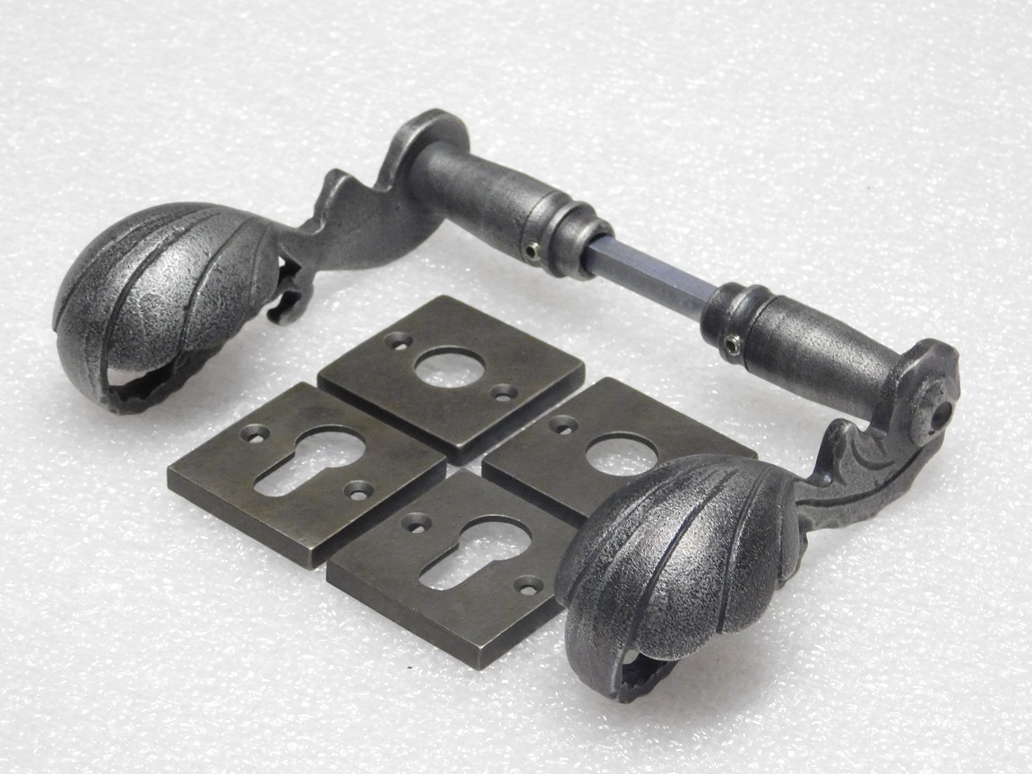 Set Klinken Vienna + Klink- en- Slotrozetten Vierkant - Gietijzer Verzinkt
