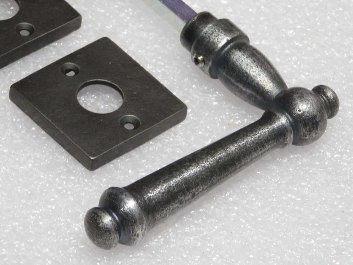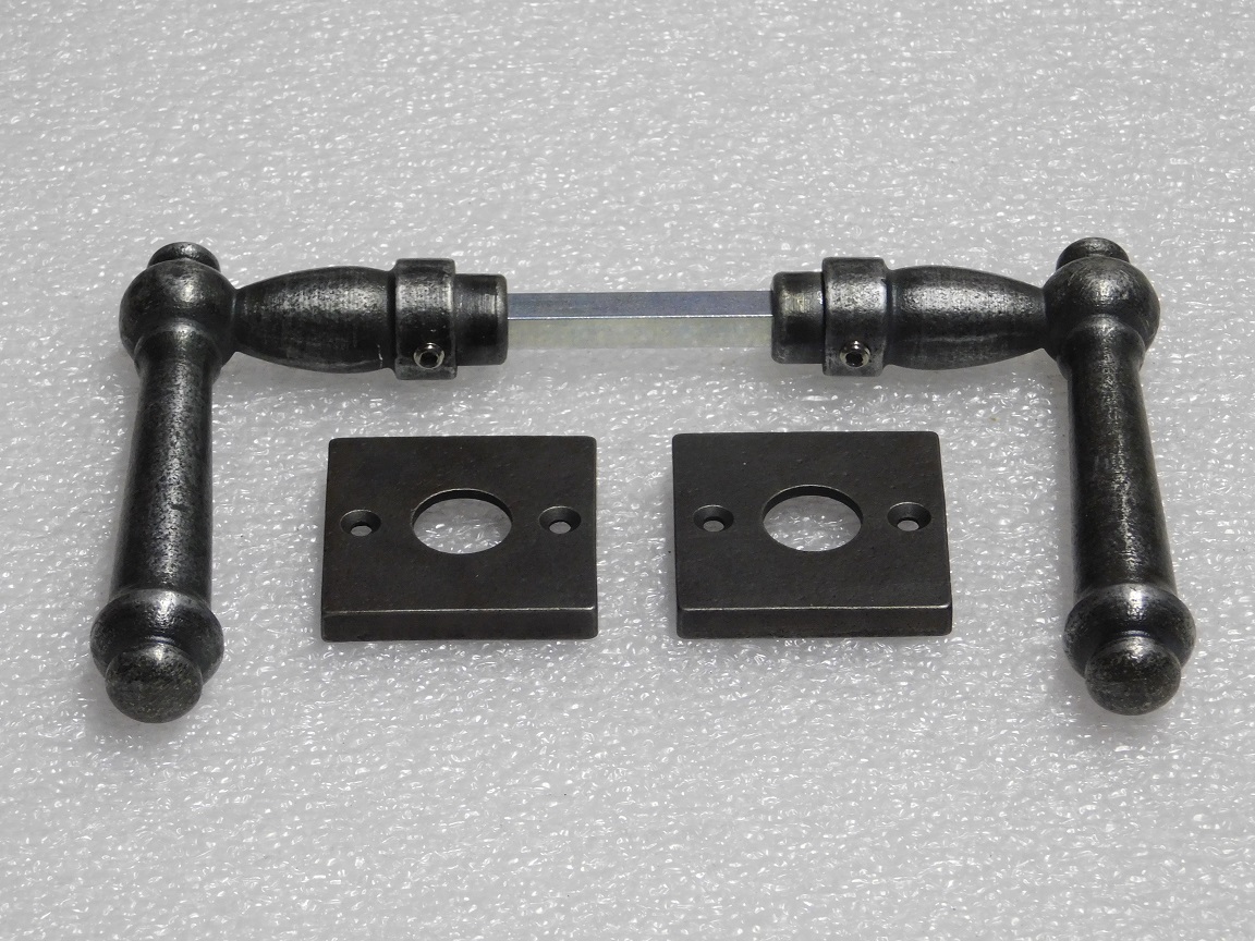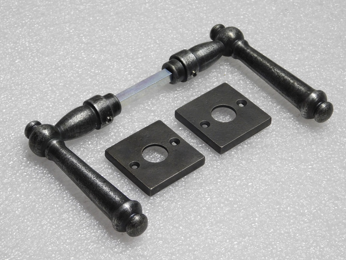 Set Klinken Windsor + Klinkrozetten Vierkant - Gietijzer Verzinkt