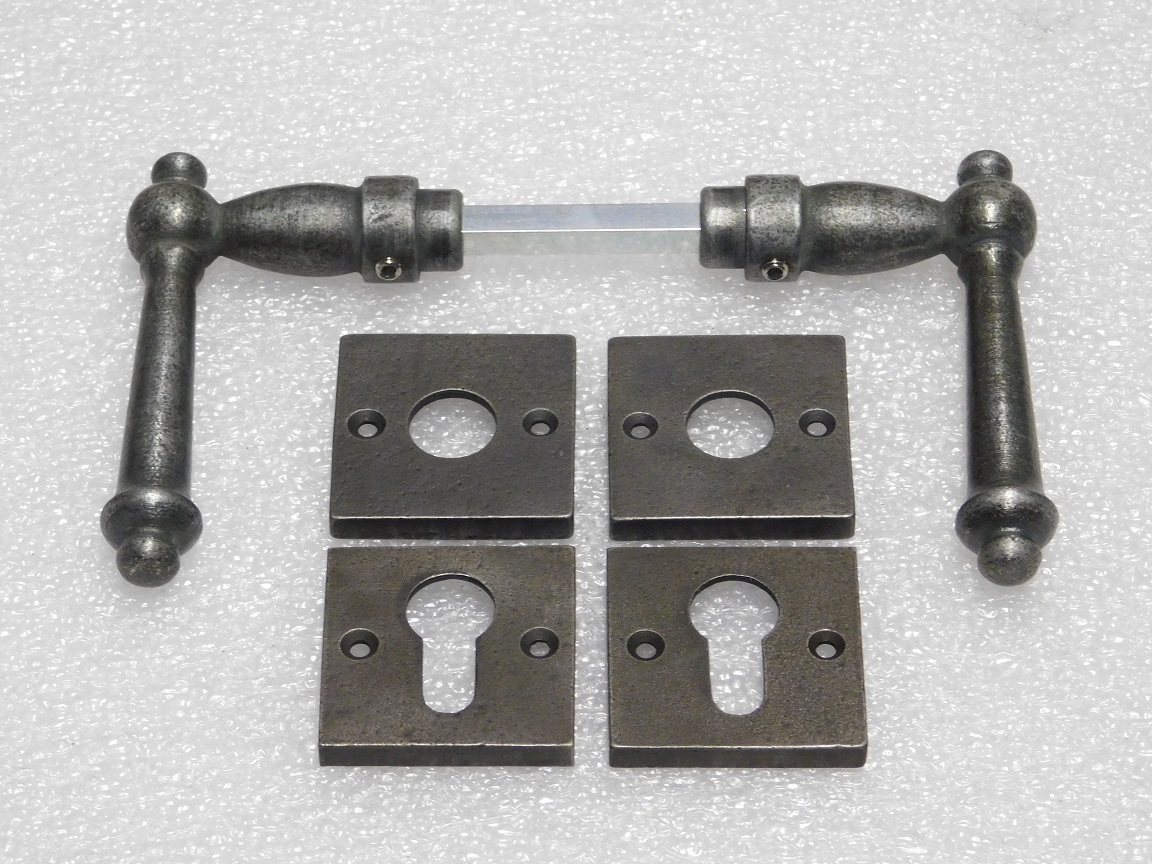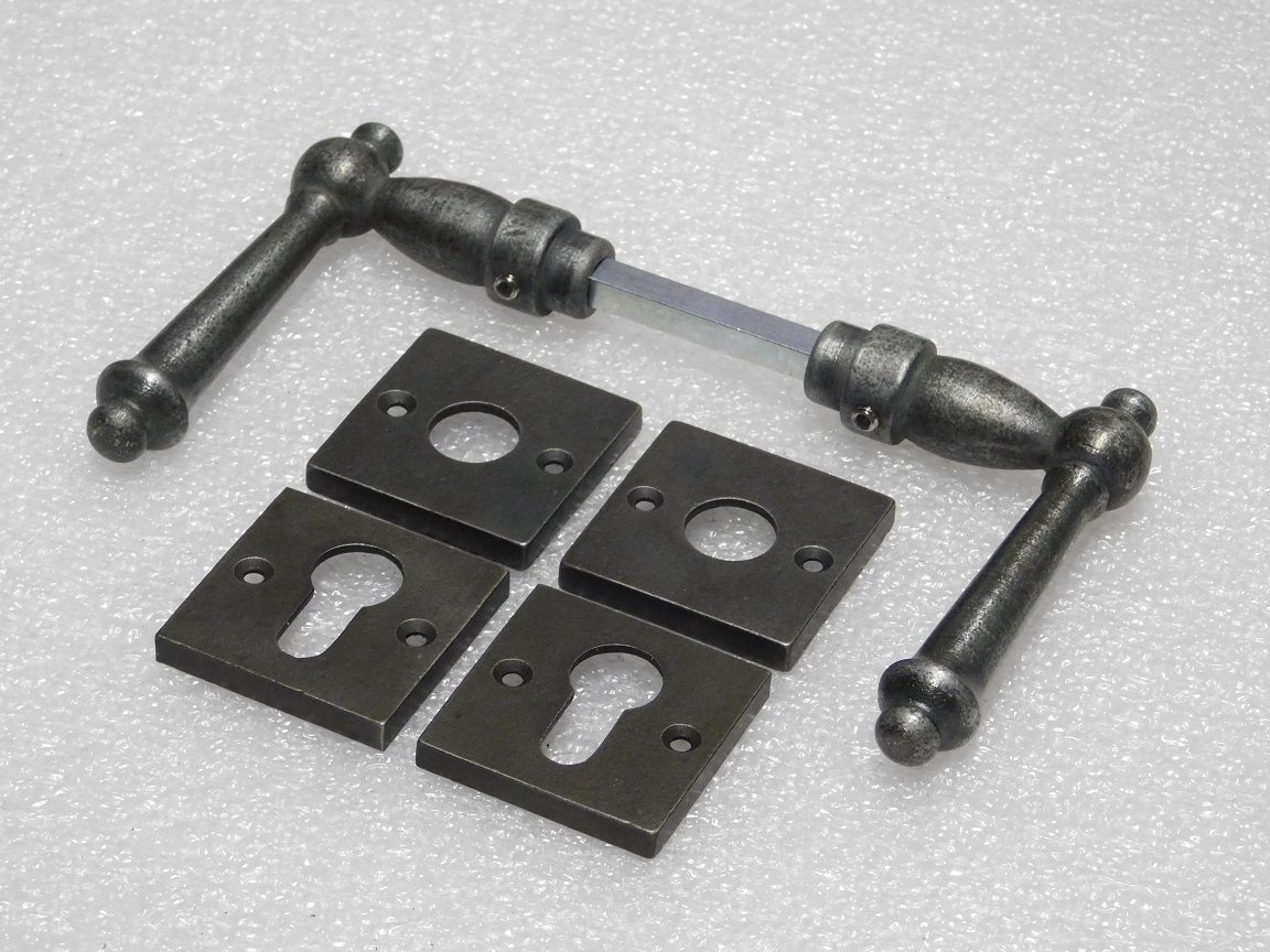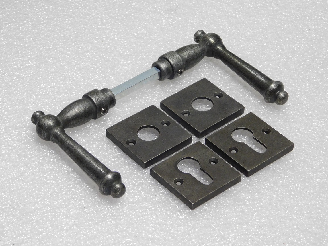 Set Klinken York + Klink- en- Slotrozetten PC Vierkant - Gietijzer Verzinkt