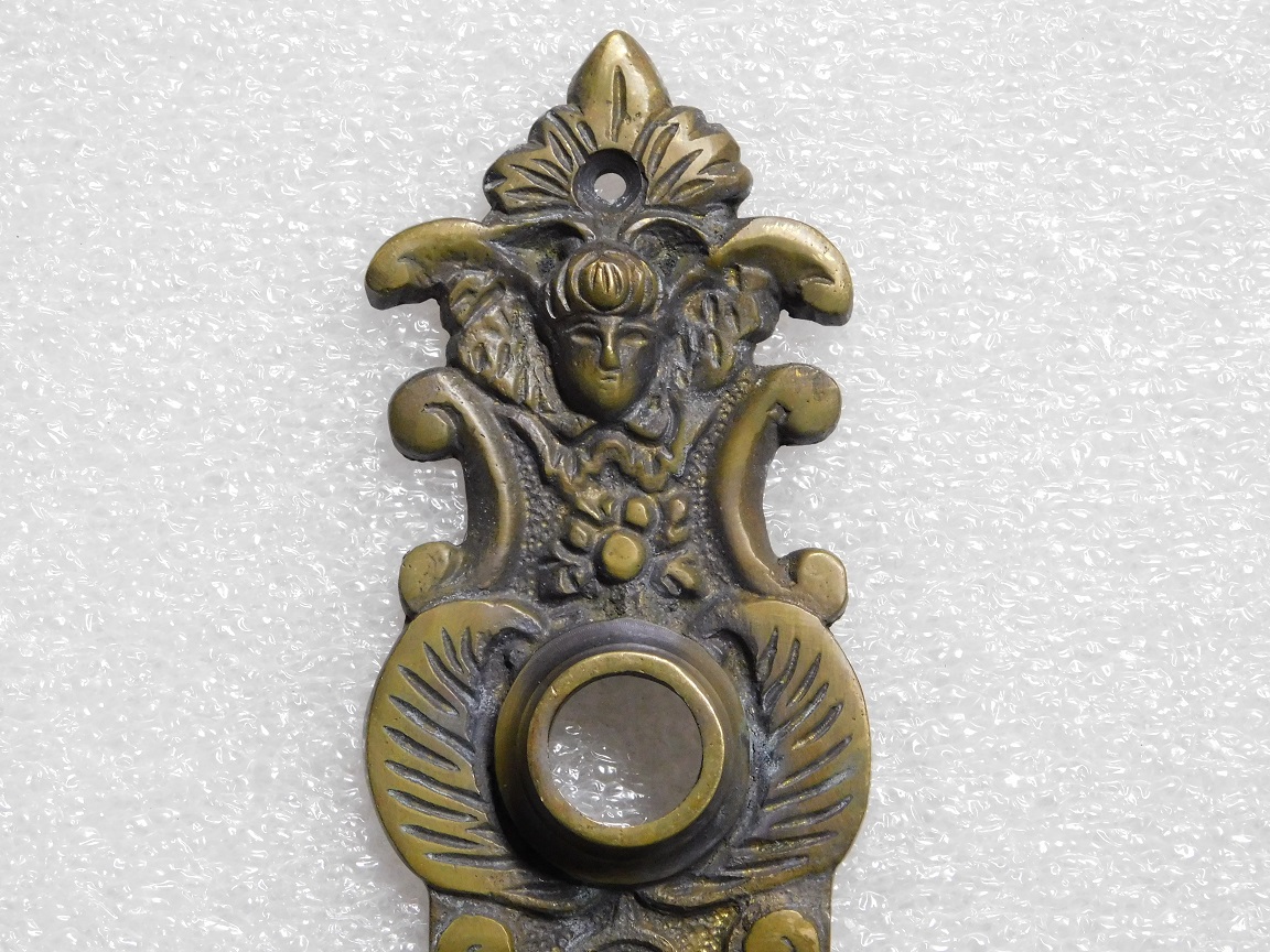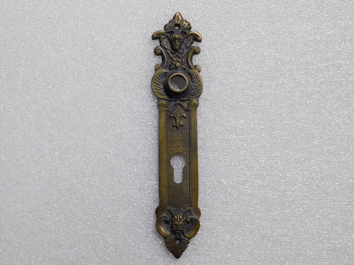 Leveringsomvang: 1x vintage engel deurplaat, ant. messing brass, pc 92